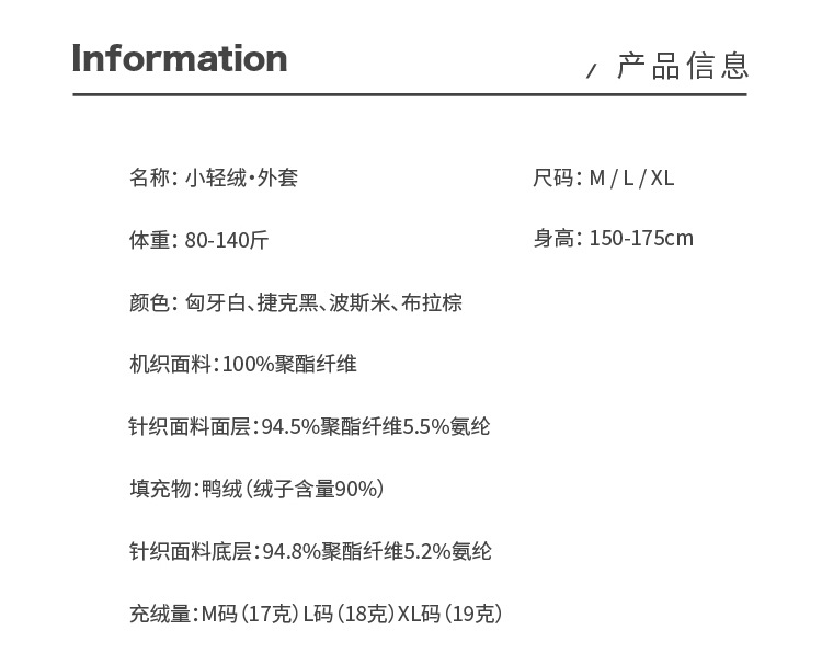 馥迦都市通勤保暖轻量鸭绒外套
