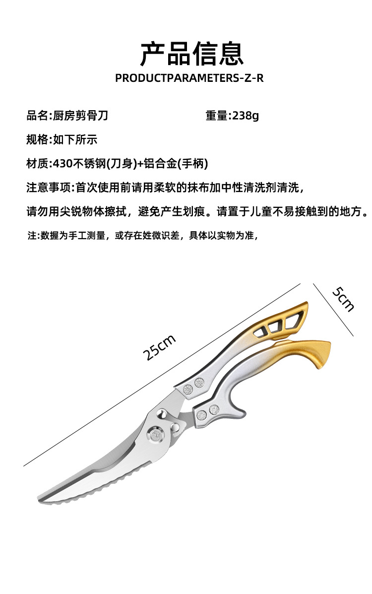 【强力厨房剪刀,专剪厚硬骨头!】剪刀厨房剪烤肉剪鸡骨剪 家用新款厨房多功能不锈钢骨头剪-QA