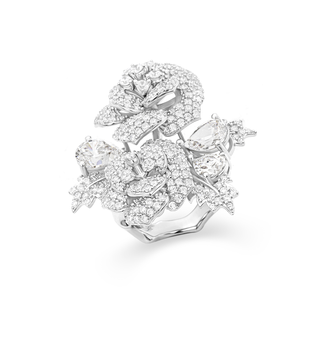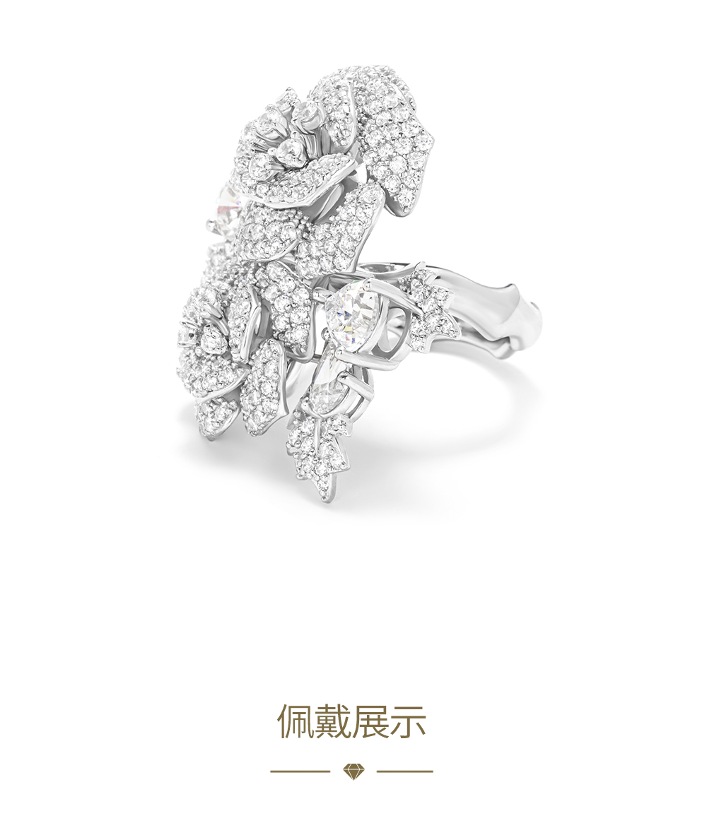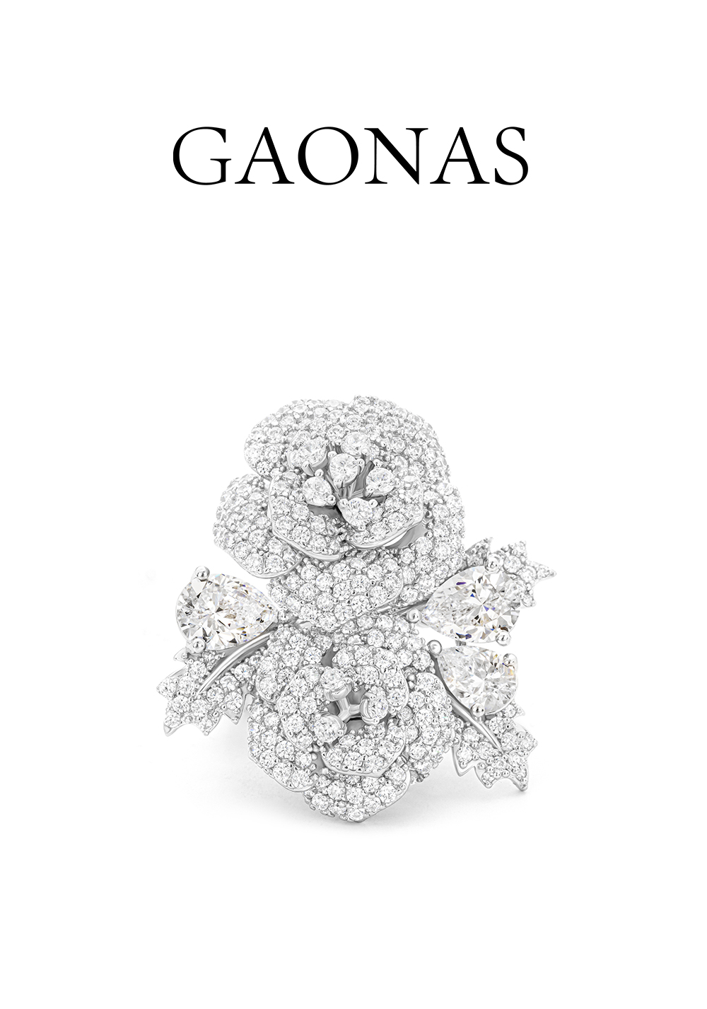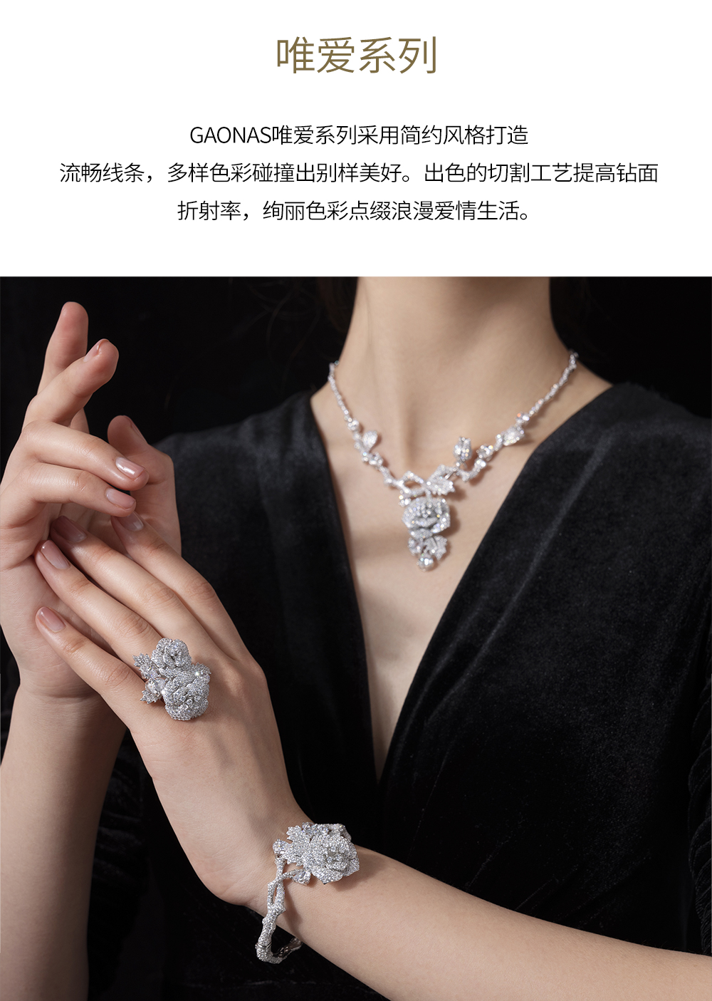 GAONAS 925银锆石戒指 高纳仕 经典玫瑰花白色开口戒WJ032633