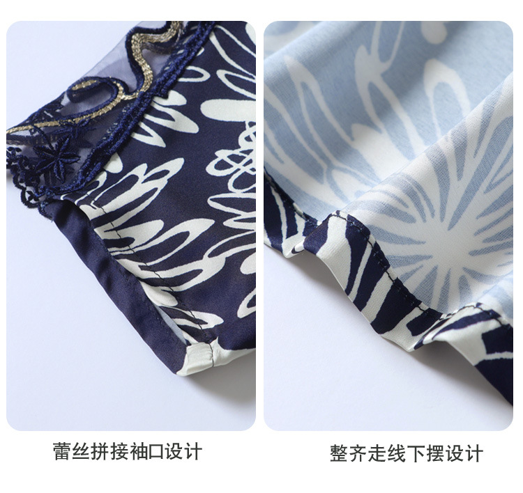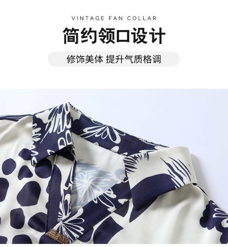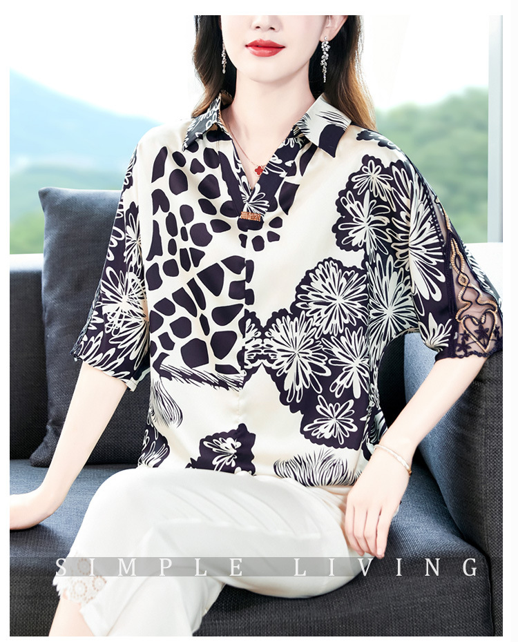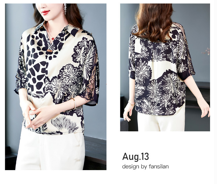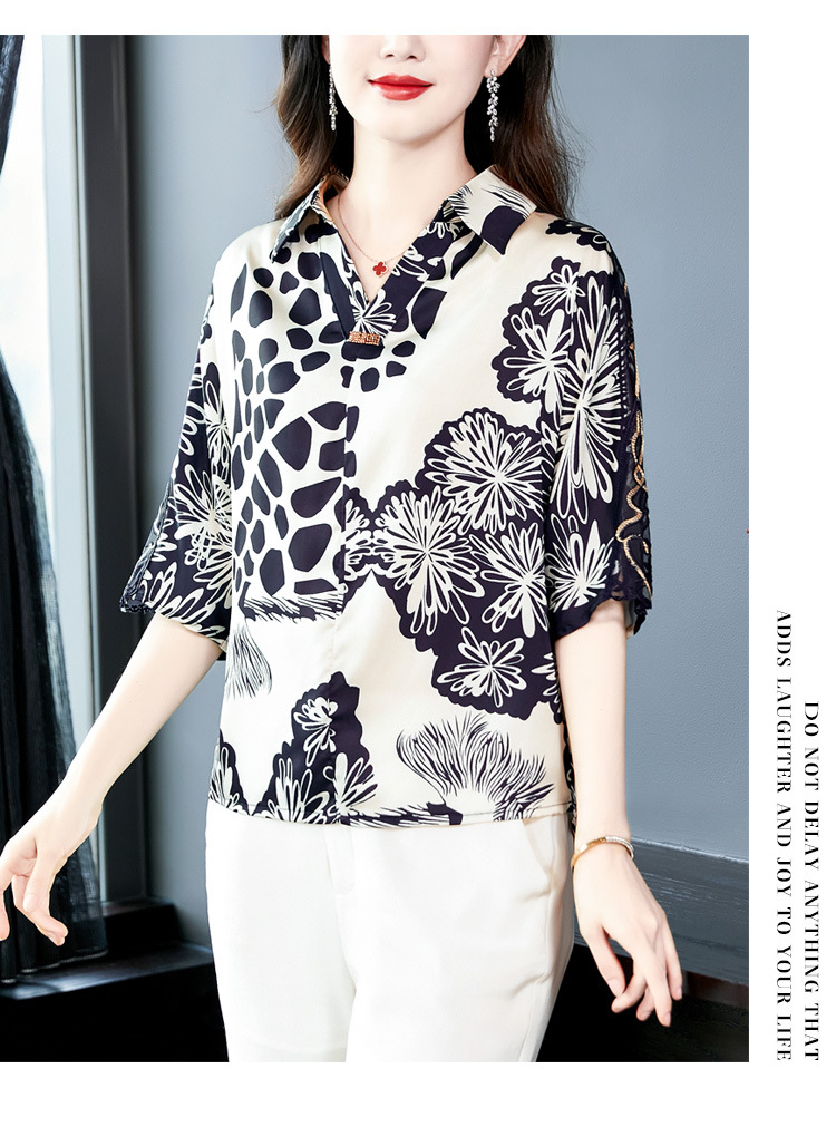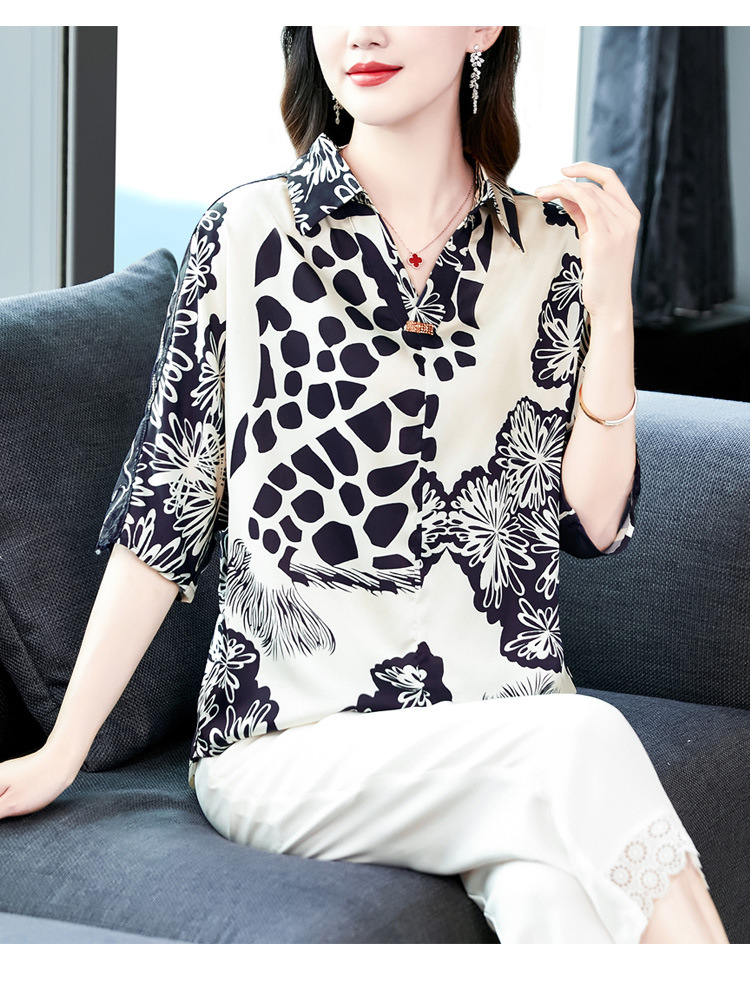 SMZ6011 2023新款夏装洋气百搭印花气质妈妈装雪纺衬衫Polo领短袖套头上衣