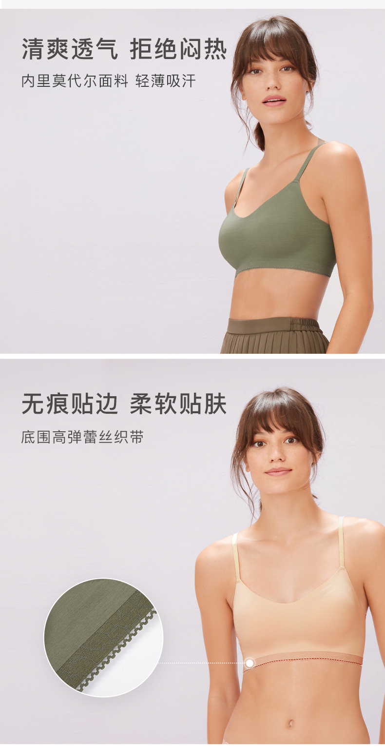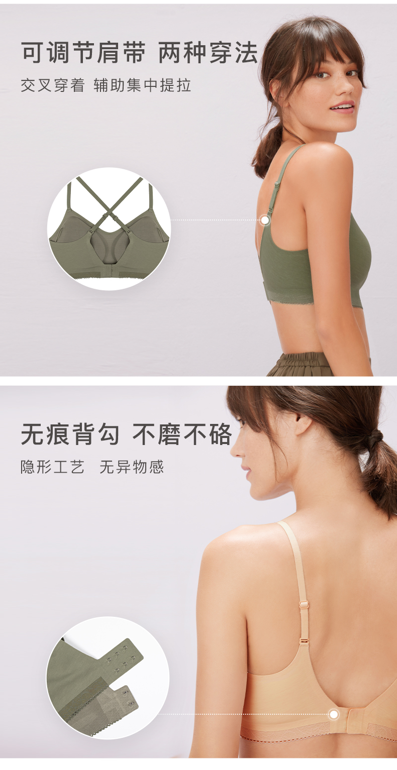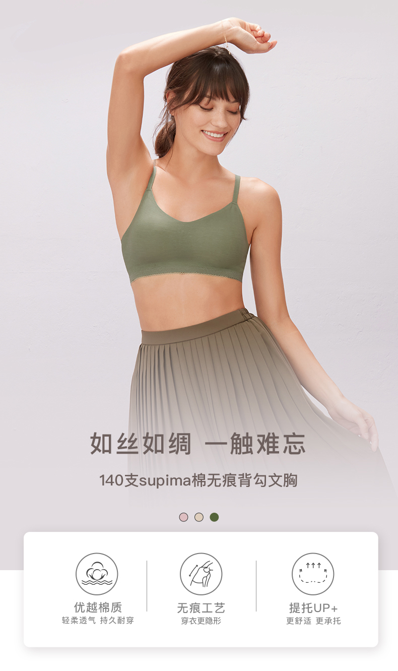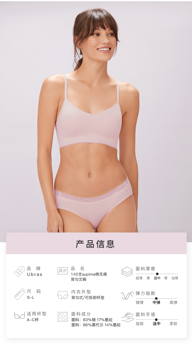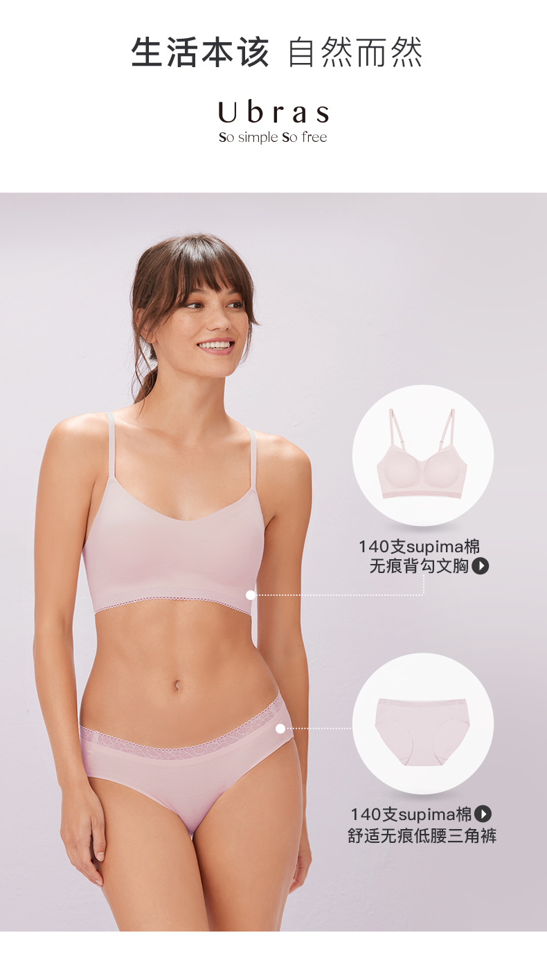 Ubras140支supima棉无痕背勾文胸透气亲肤无痕无钢圈舒适胸罩女