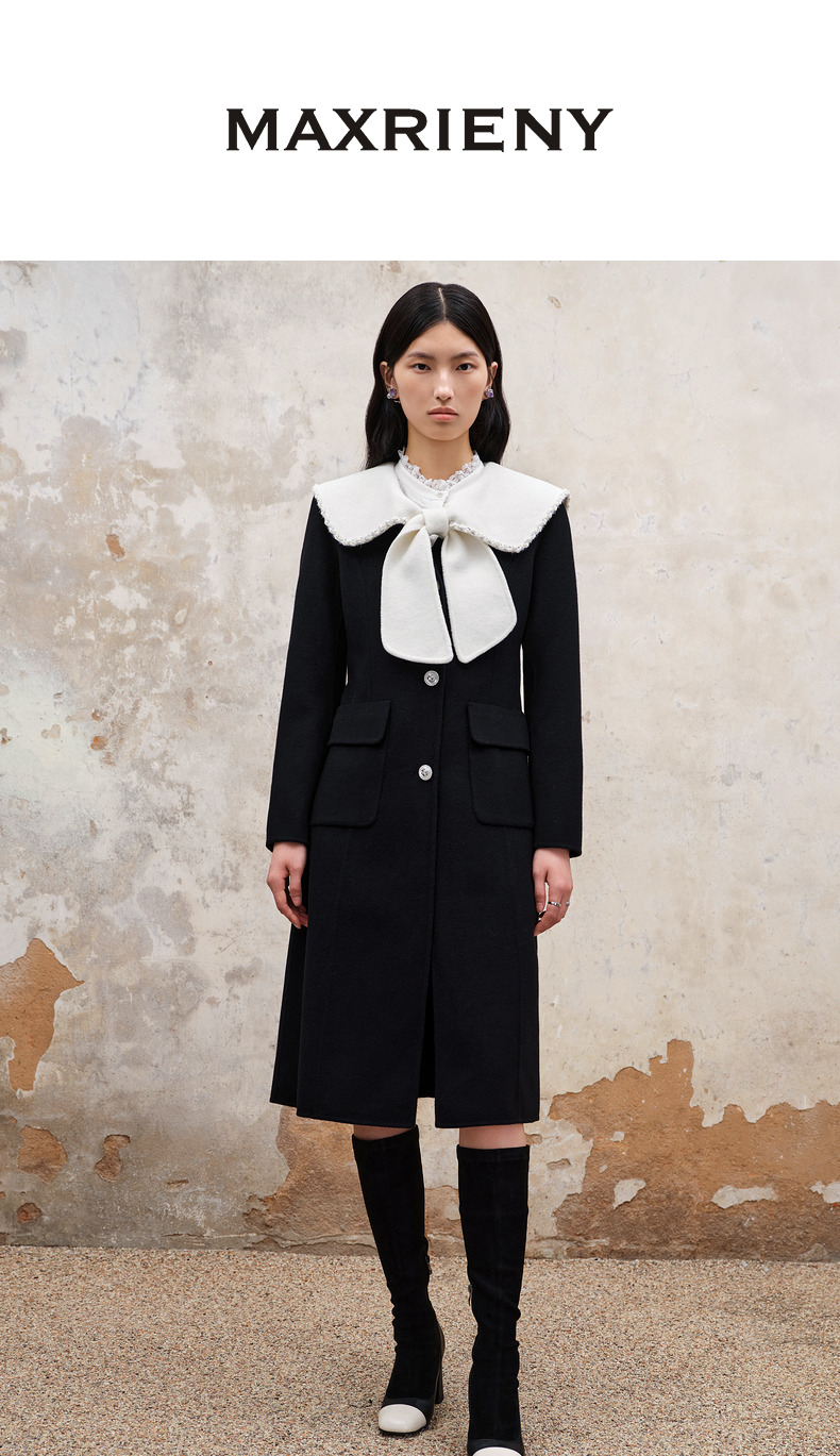 MAXRIENY*复古蝴蝶结大衣长款高级气质大衣外套(货号:MS88CT513)