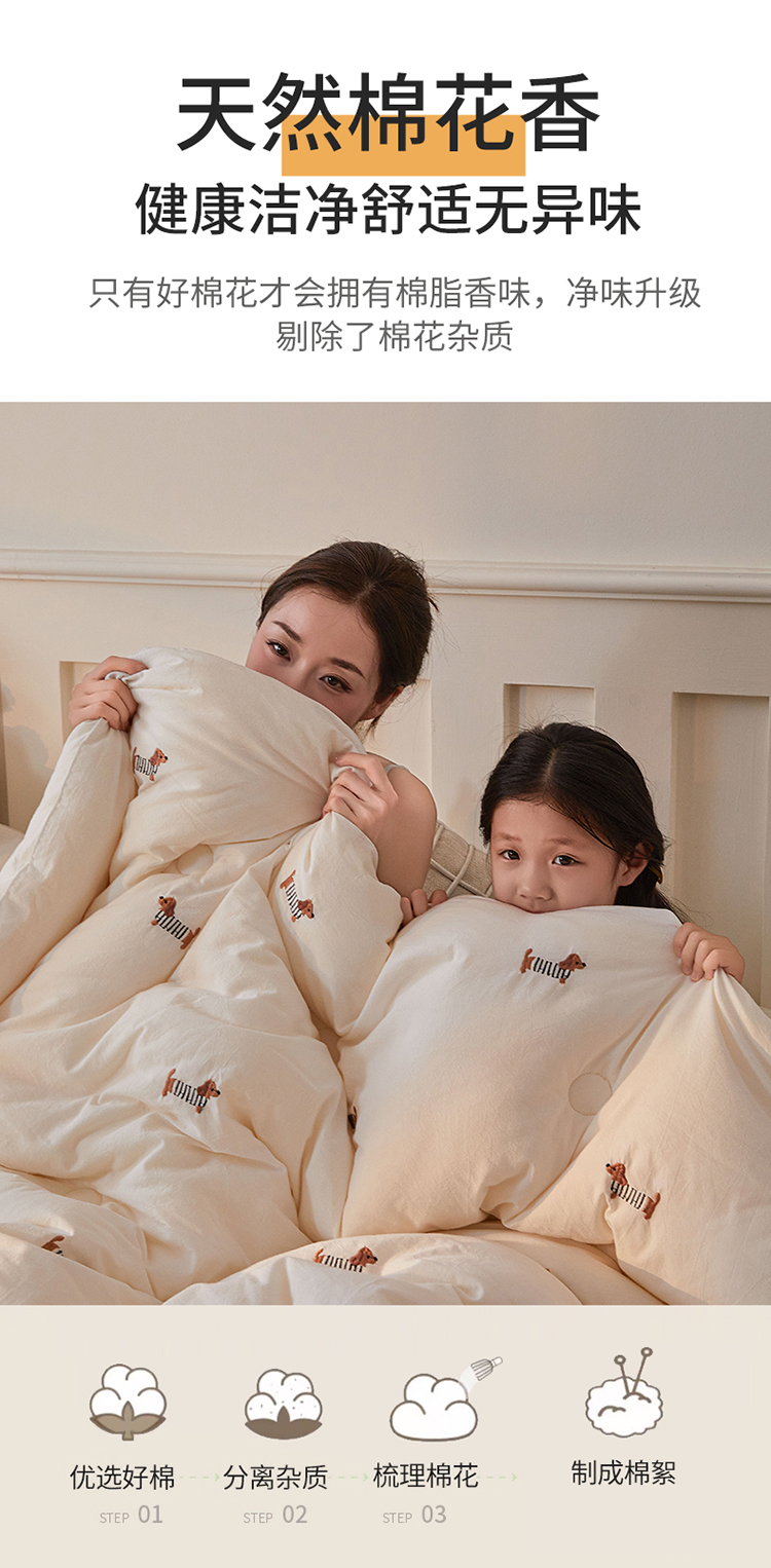 【品牌直发】小象咘叮 绣花被全棉刺绣被芯 里外全棉新疆棉花被纯棉被芯被子春秋被冬被儿童被