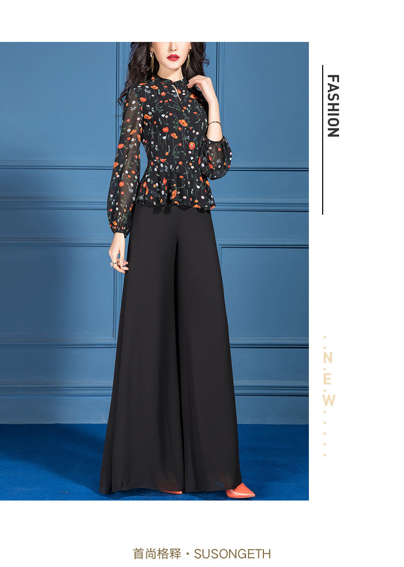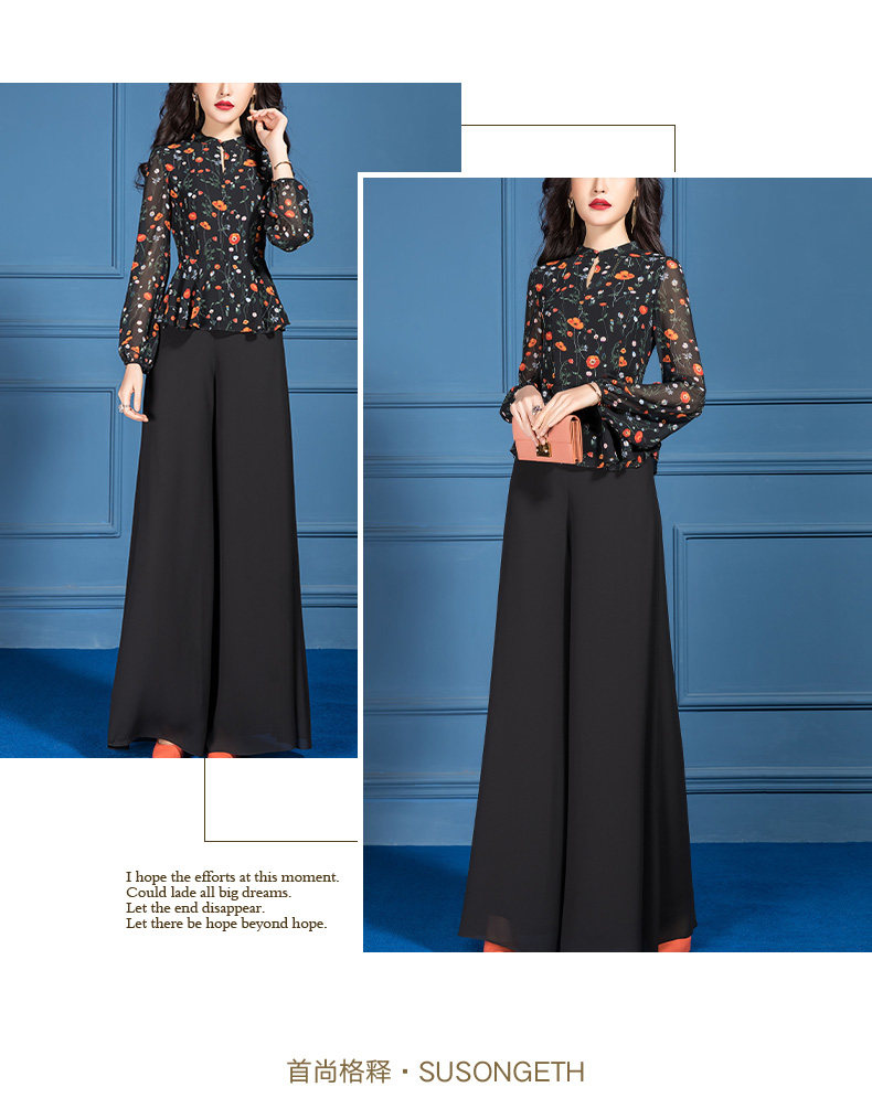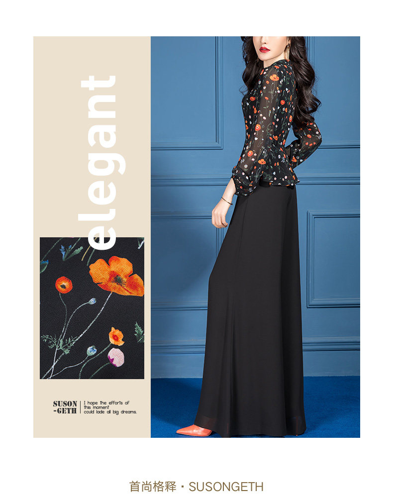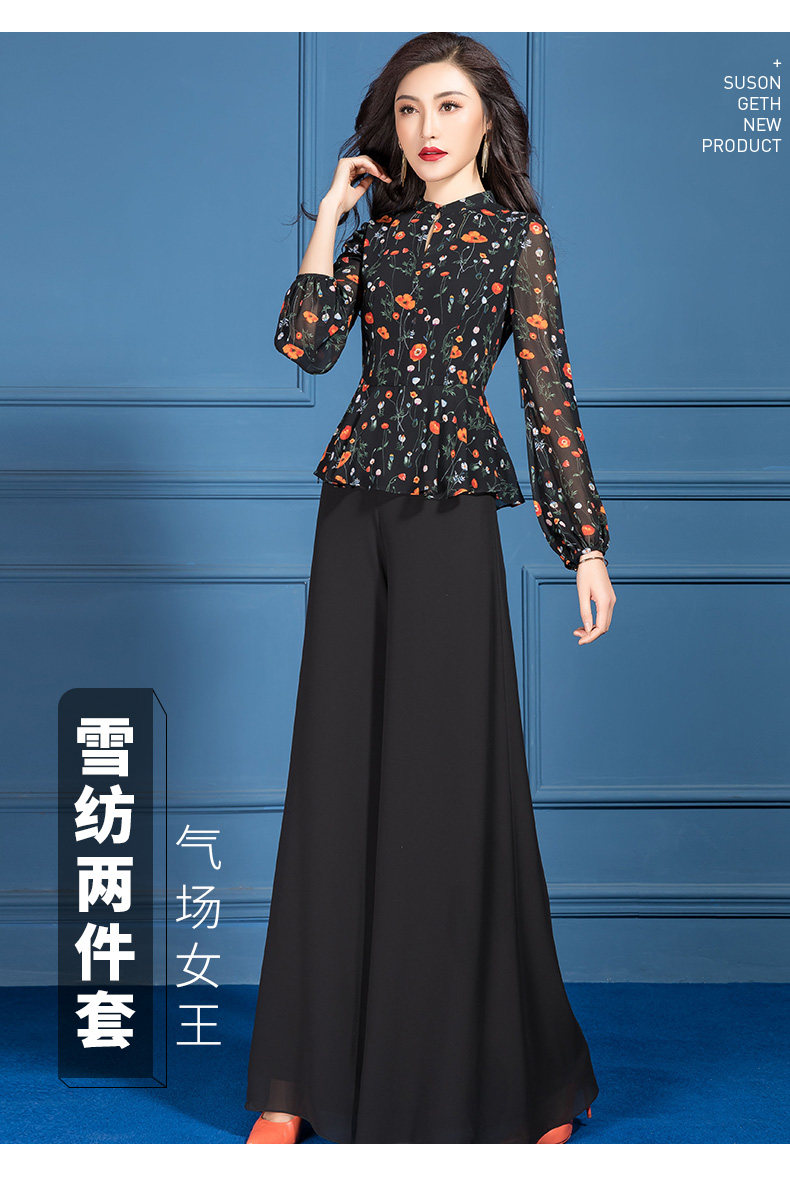 SSGS-41531新款时尚雪纺印花上衣阔腿裤套装裙