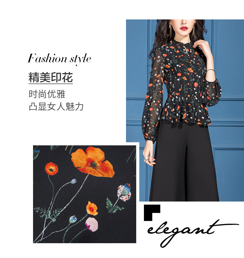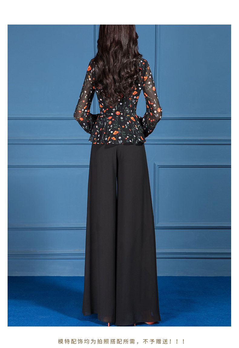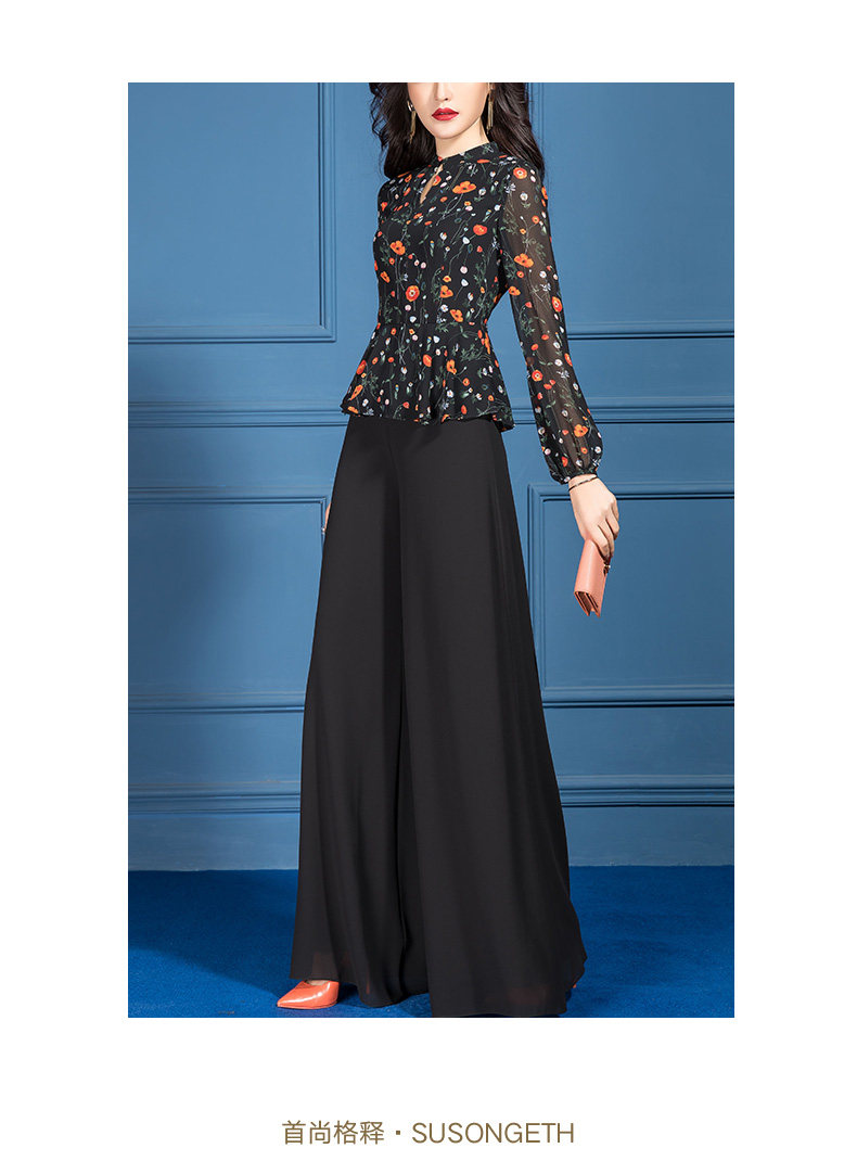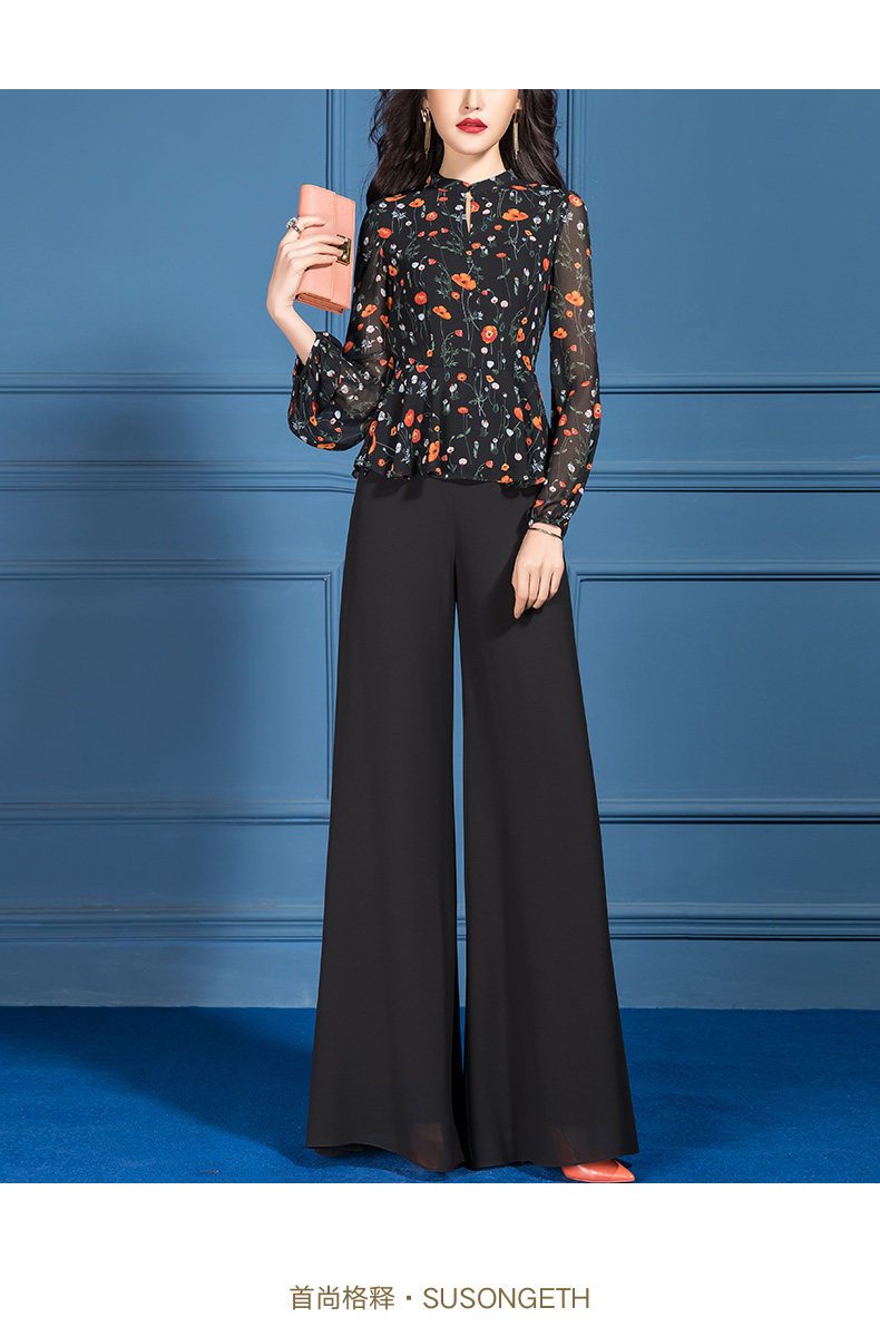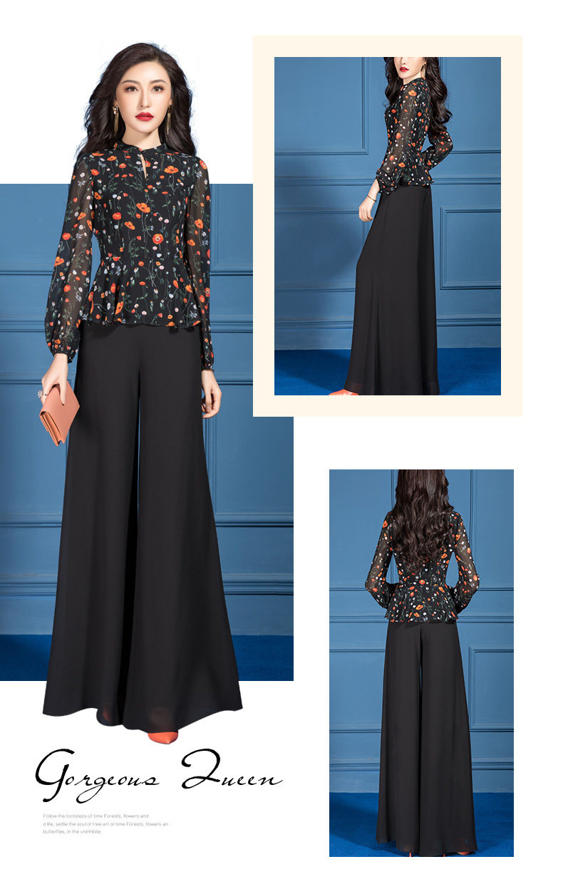 SSGS-41531新款时尚雪纺印花上衣阔腿裤套装裙