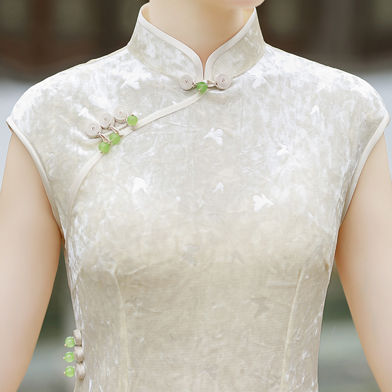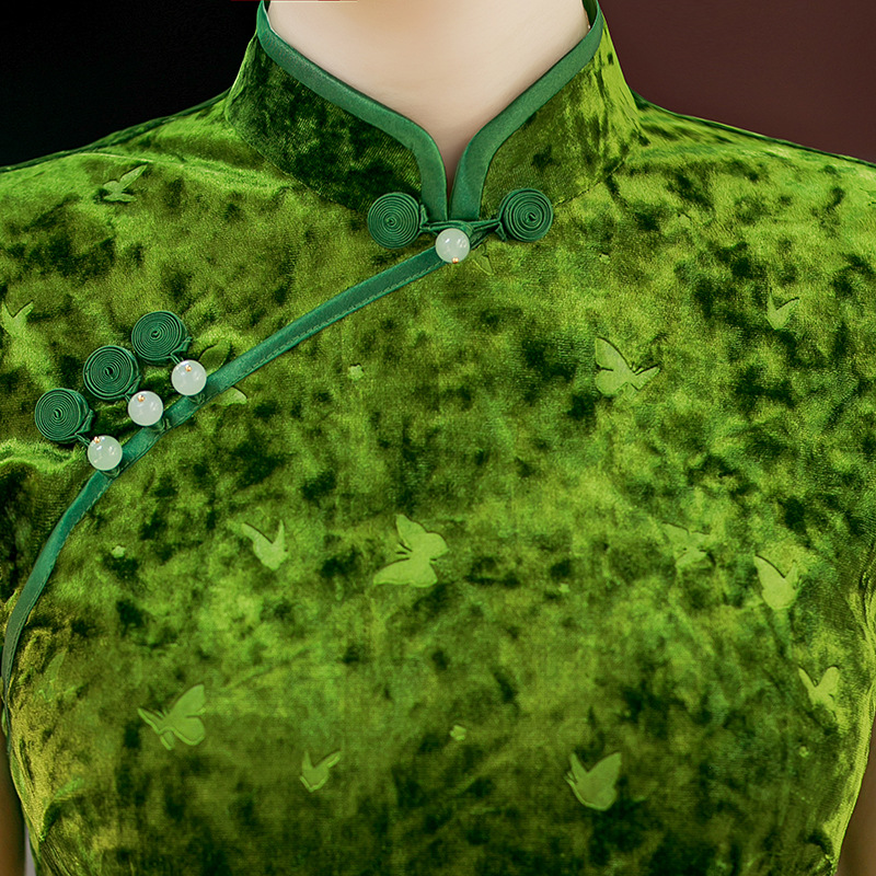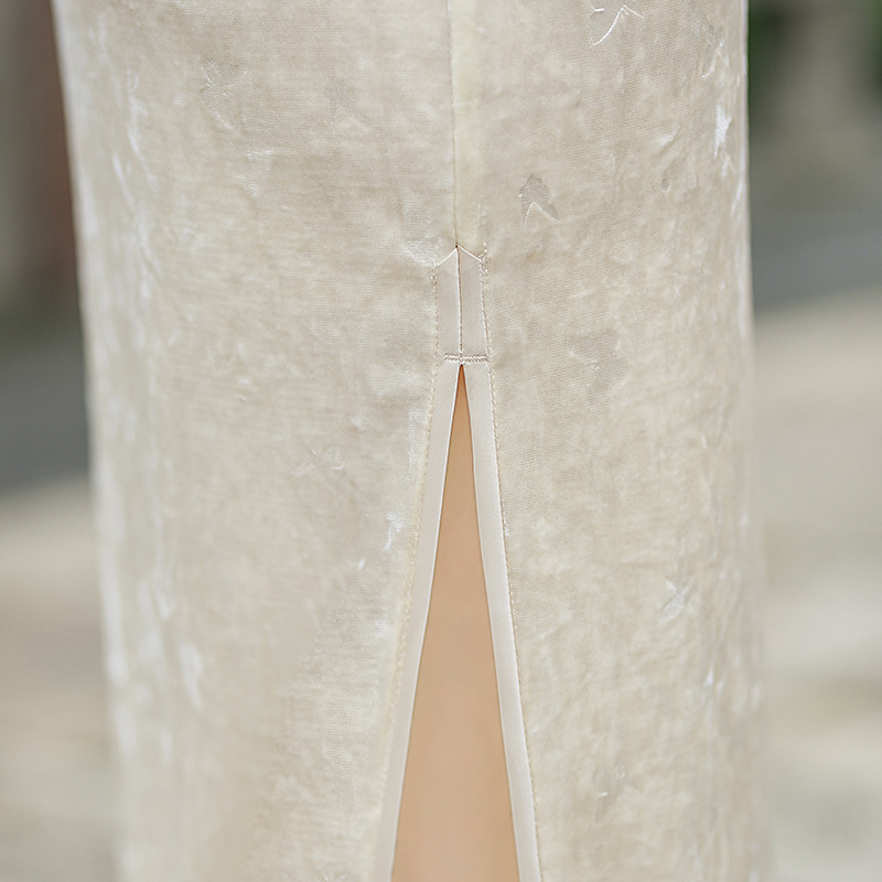 2025早秋新款中国风印花醋酸冰花绒长款短袖复古旗袍女装改良显瘦8939 商品图3