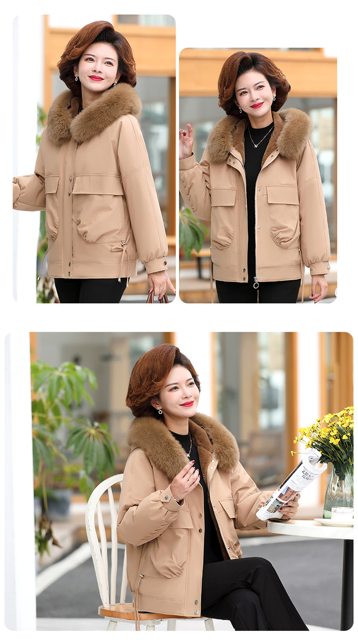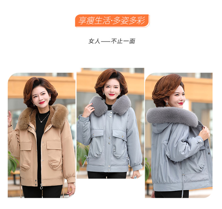 CH-13妈妈冬装加绒加厚洋气中老年妈妈短款羽绒棉服