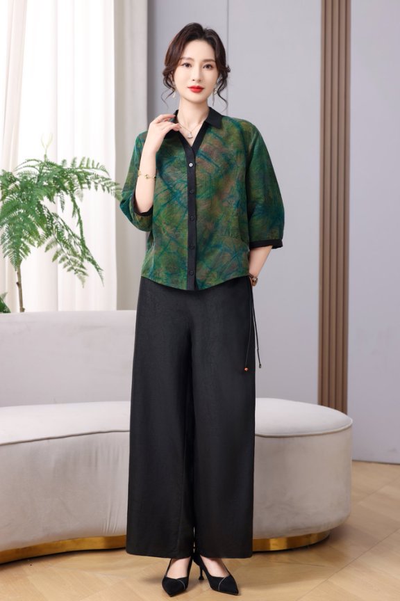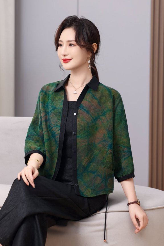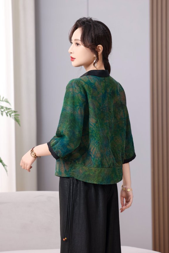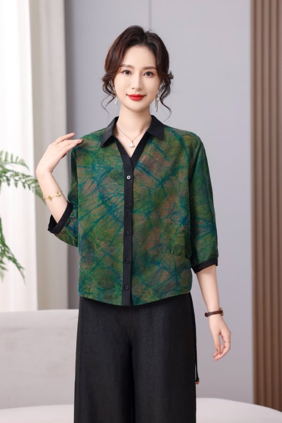 丁摩真丝香云纱新中式夏季宽松7分袖100%桑蚕丝上衣AL56030