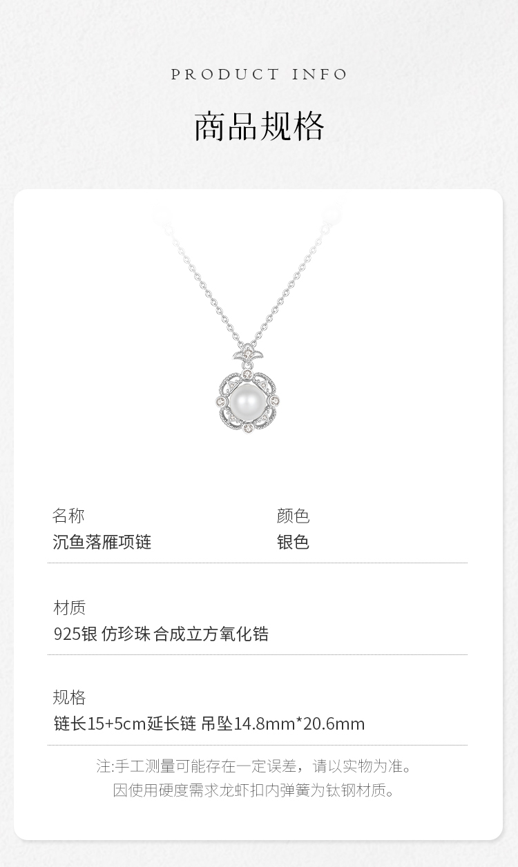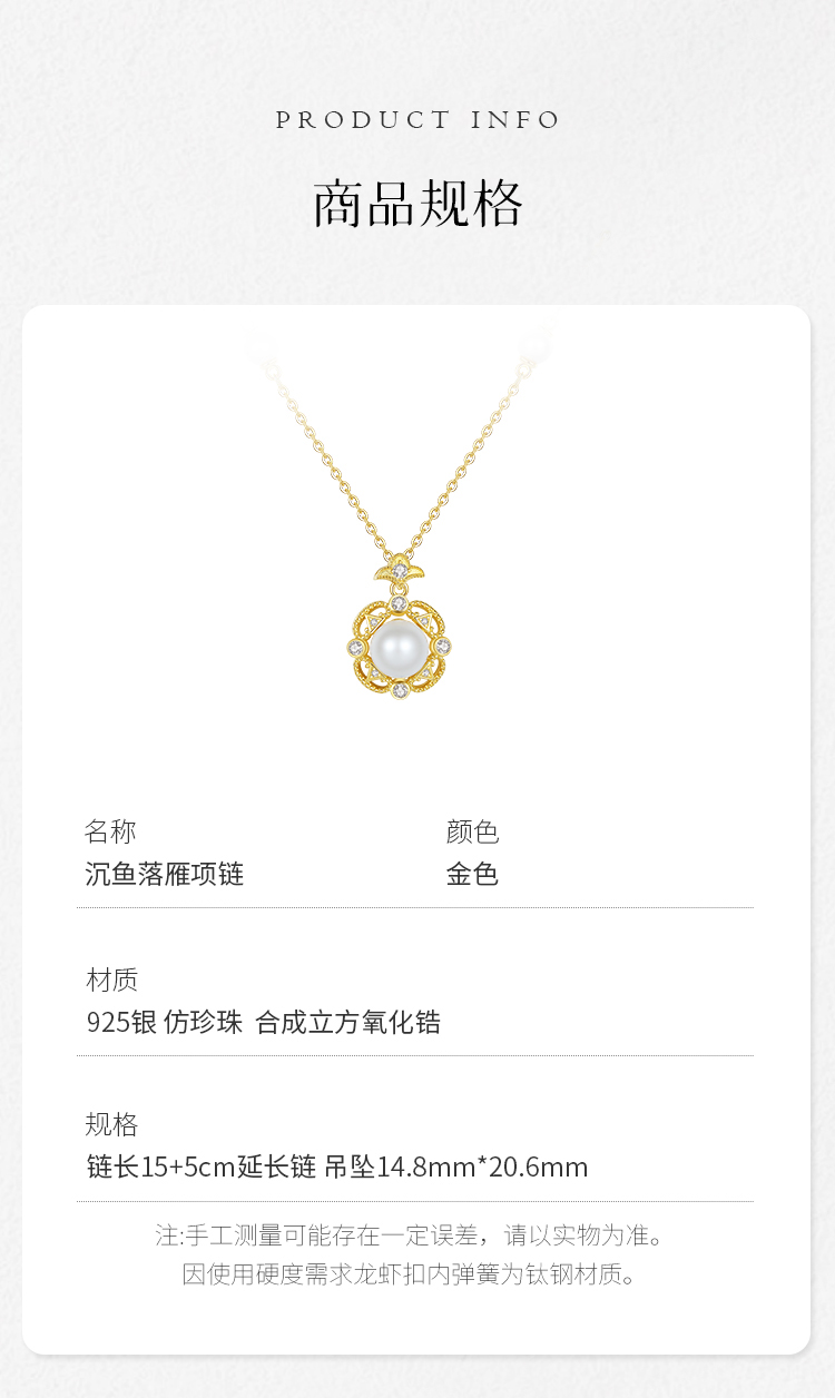 Winy925纯银沉鱼落雁项链送女友闺蜜节日生日礼物