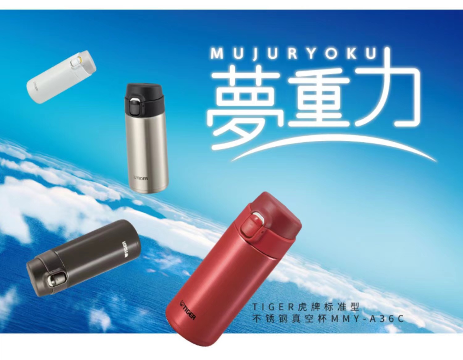 虎牌标准型不锈钢真空保温杯360ml-MMY-A36C