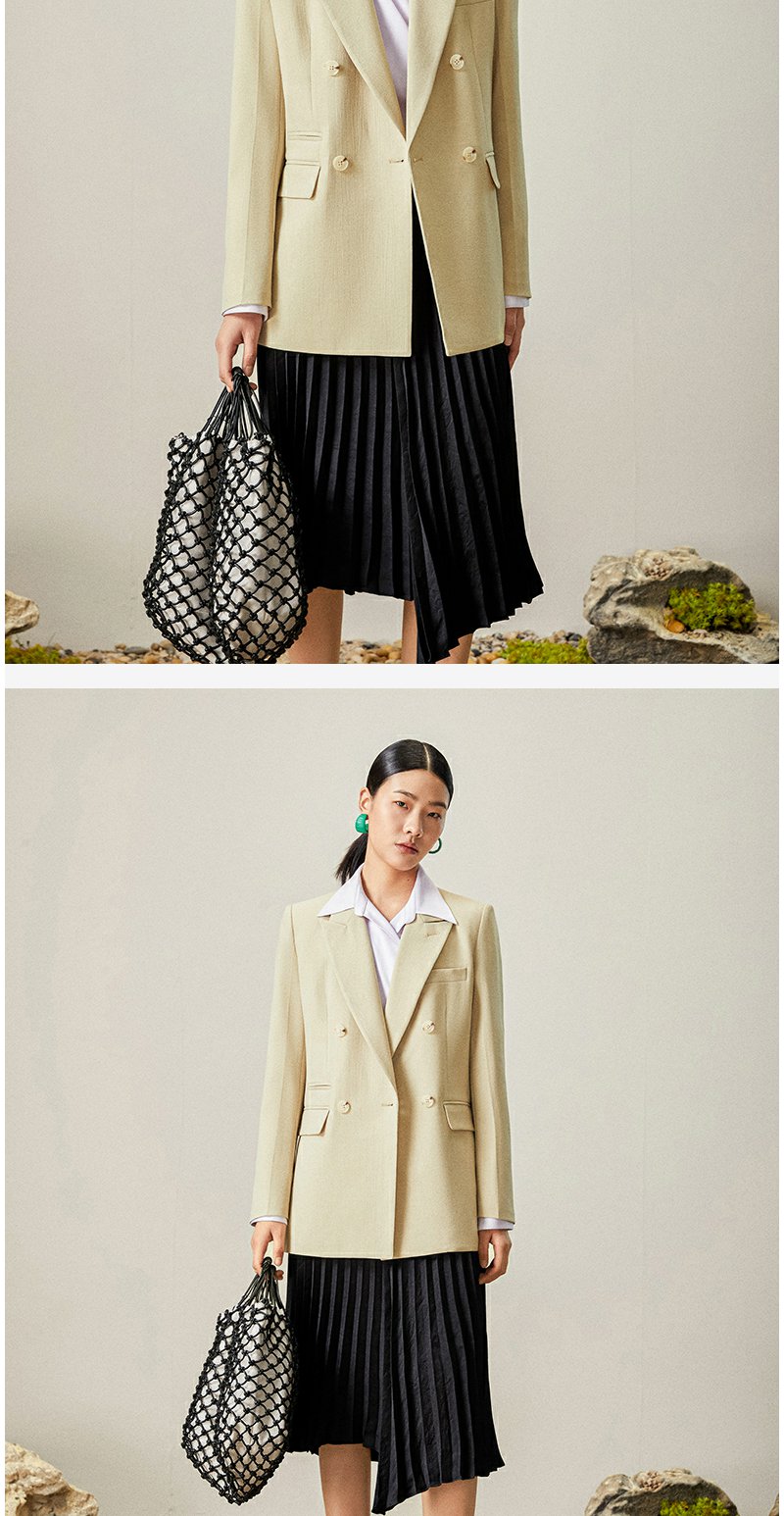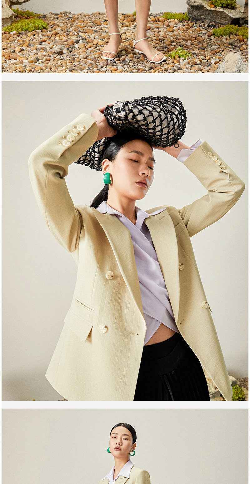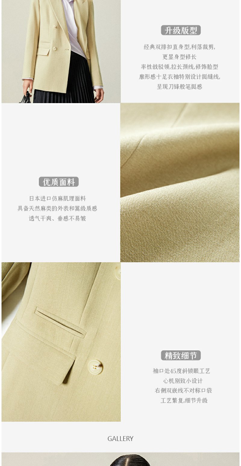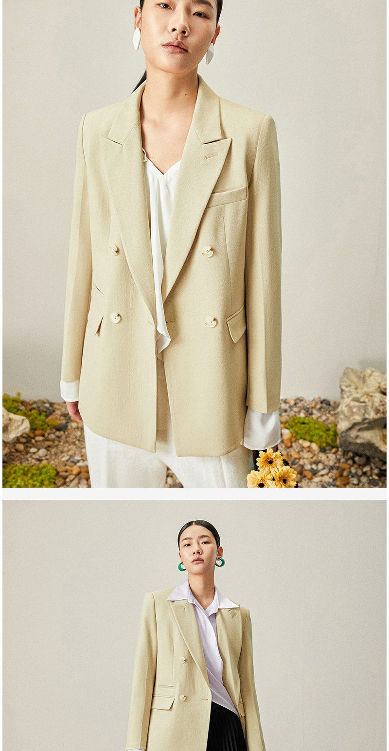 西嘉【日本Jin口天Ran麻感】高端小西装外套女双排扣宽松通勤气质西服
