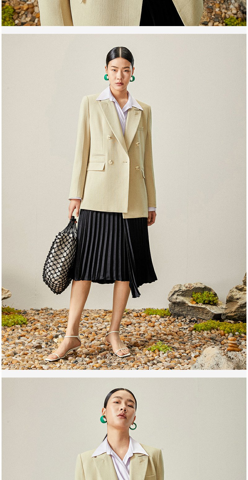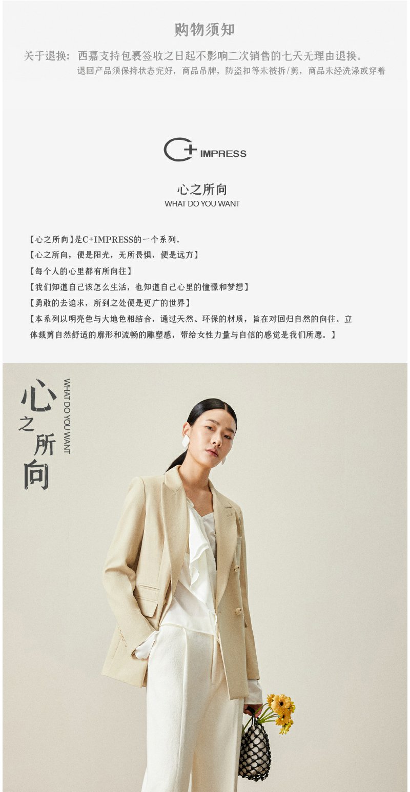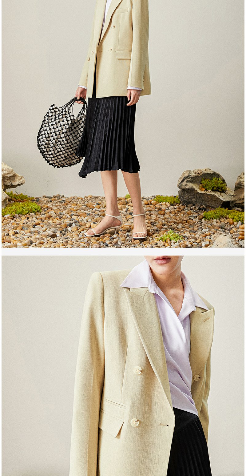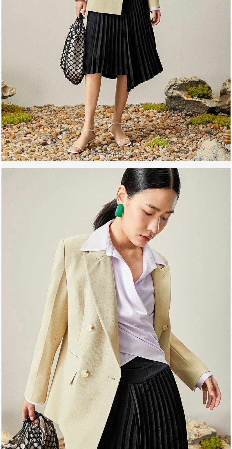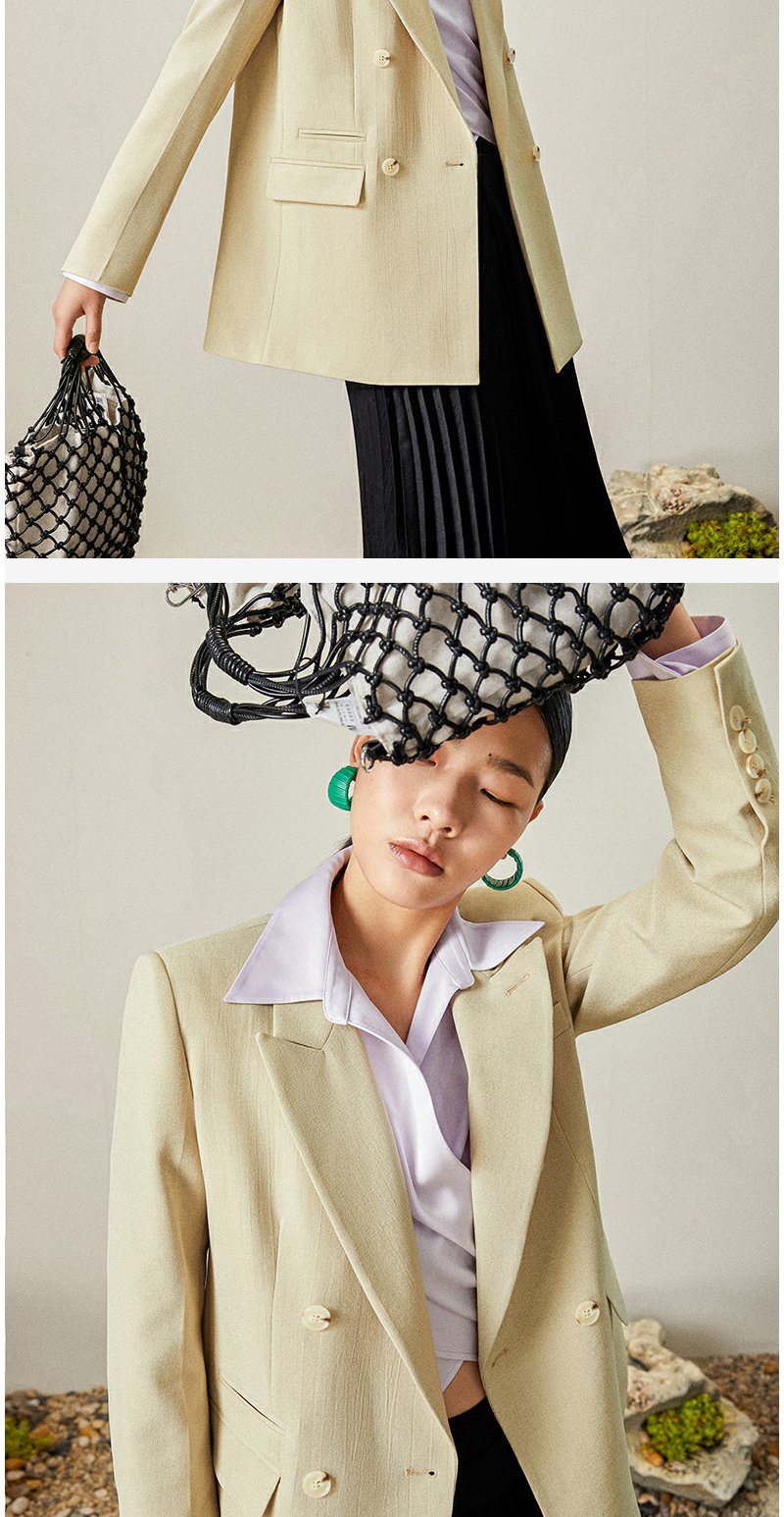 西嘉【日本Jin口天Ran麻感】高端小西装外套女双排扣宽松通勤气质西服