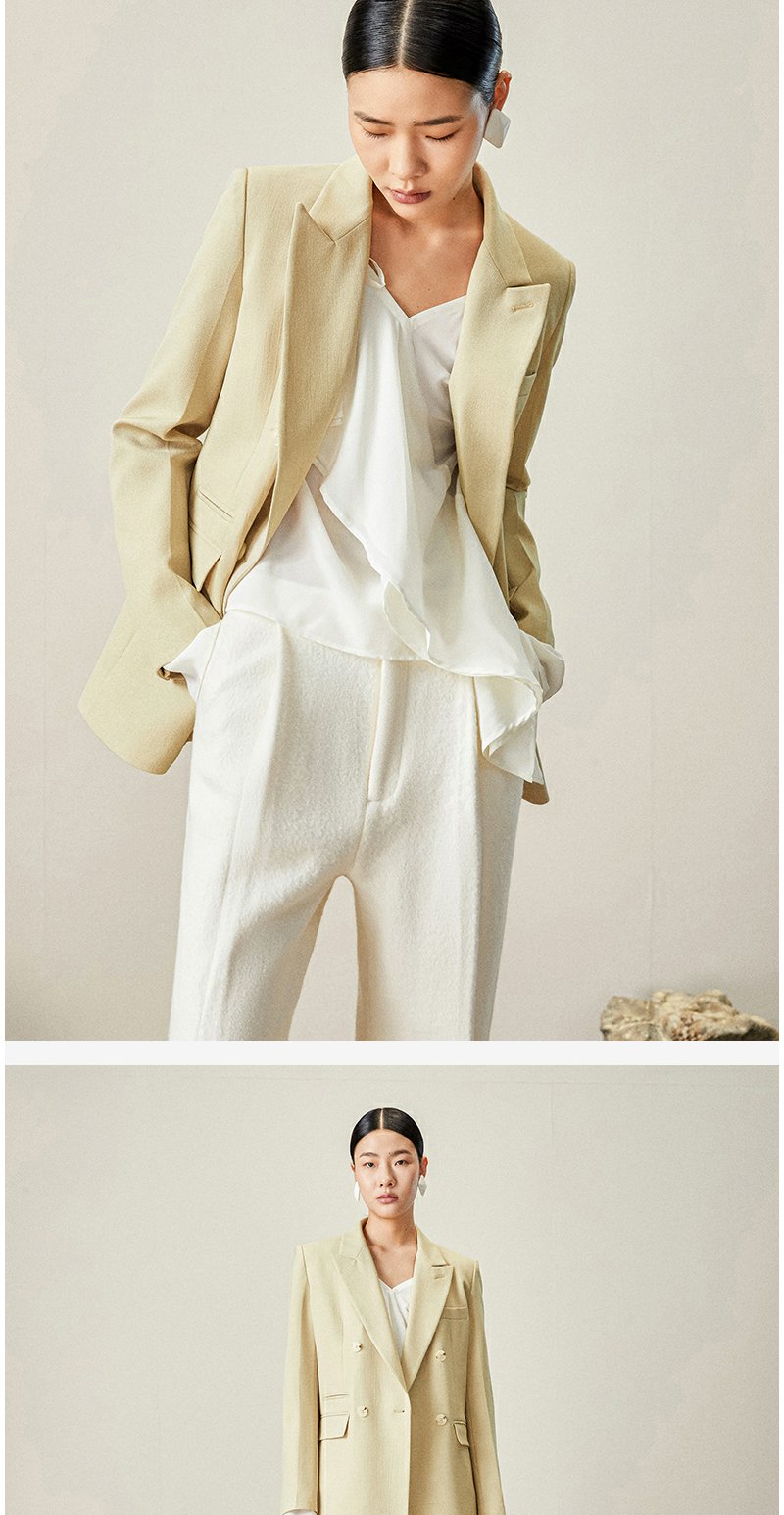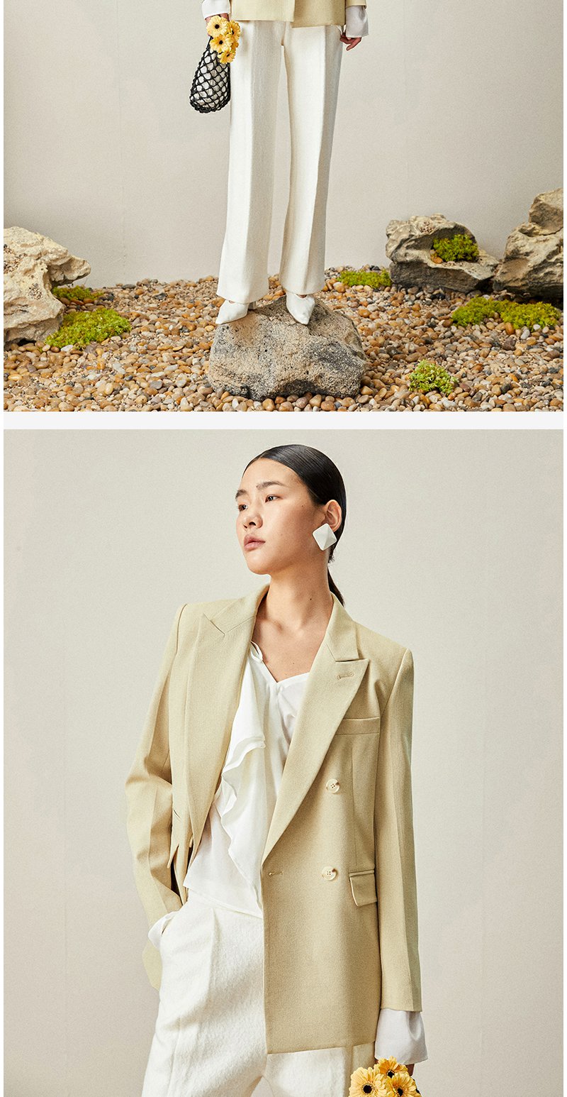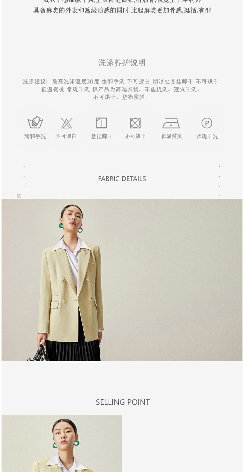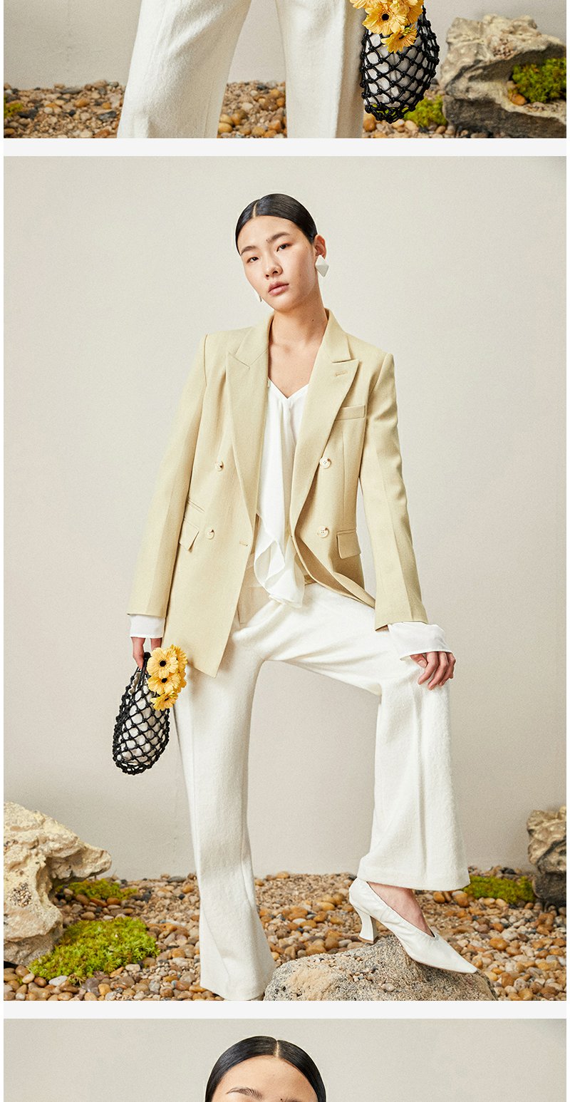 西嘉【日本Jin口天Ran麻感】高端小西装外套女双排扣宽松通勤气质西服