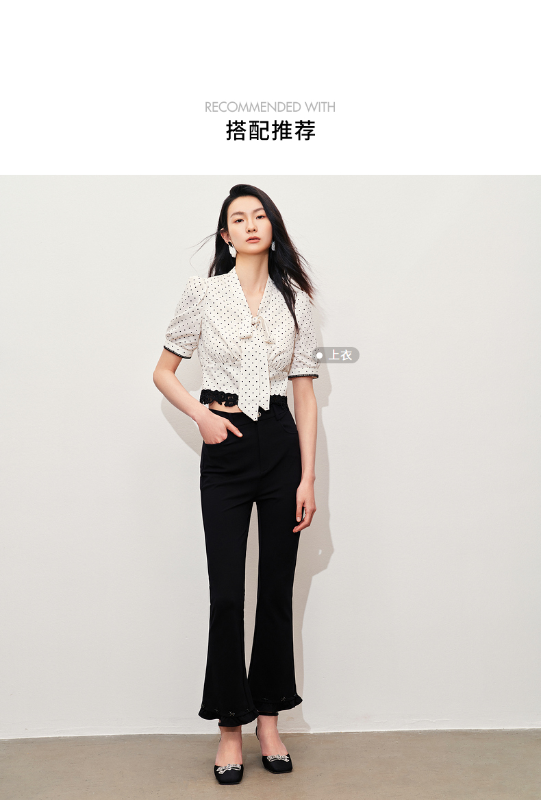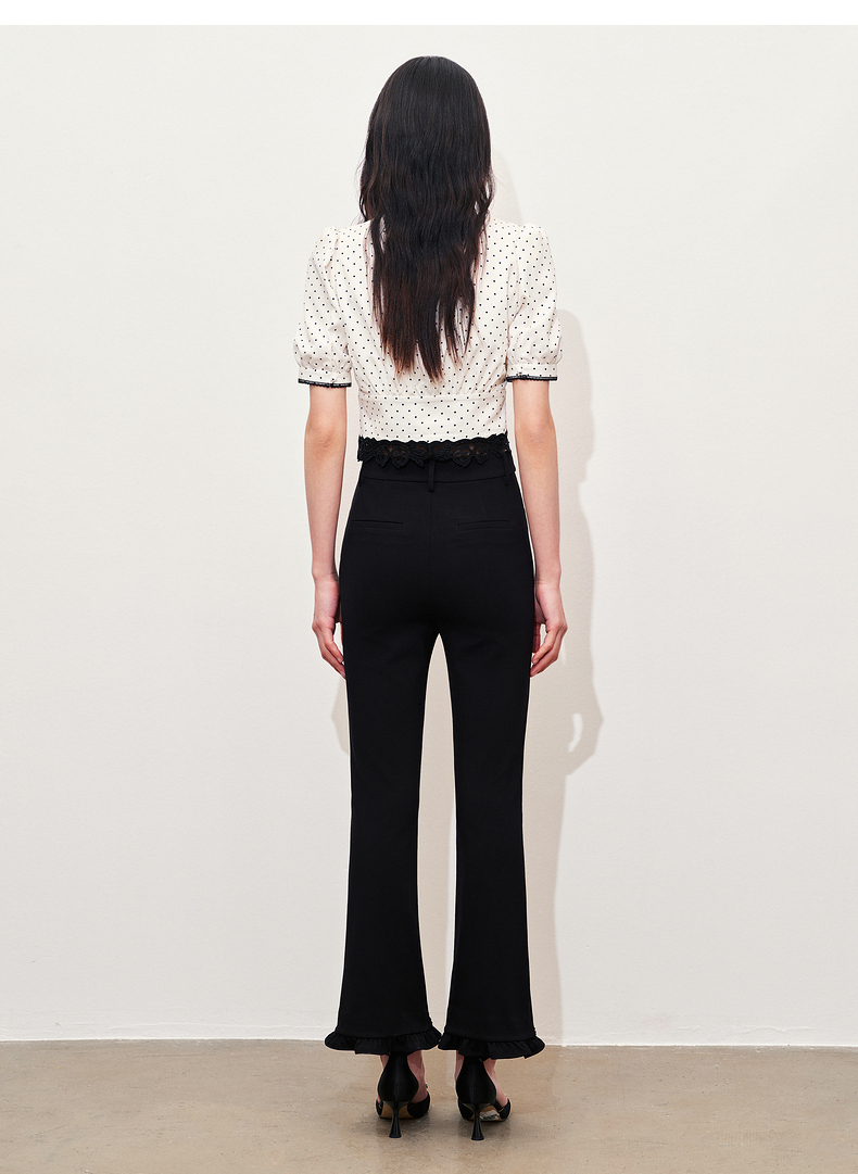 MAXRIENY【商场同款】复古优雅荷叶微喇九分裤女(货号:MC85PA050)