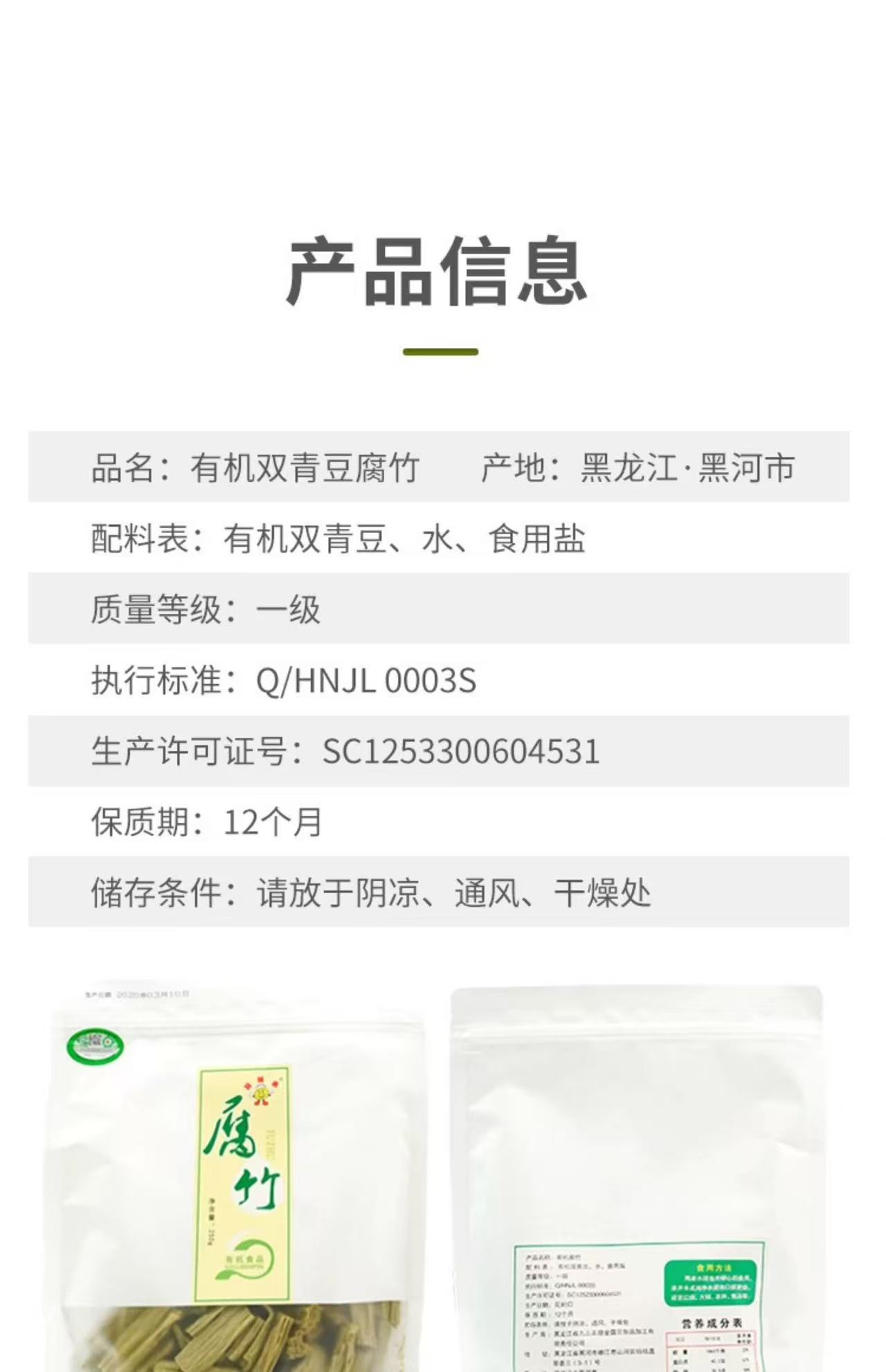 【来自北大荒的有机食品】有机认证 无添加 | 有机双青豆腐竹 火锅凉拌食材 高植物蛋白 250g*2袋