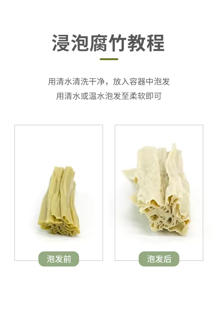 3.泡发后的腐竹颜色变浅,水变色属于正常现象,并非是有添加色素掉色,介意者慎拍!