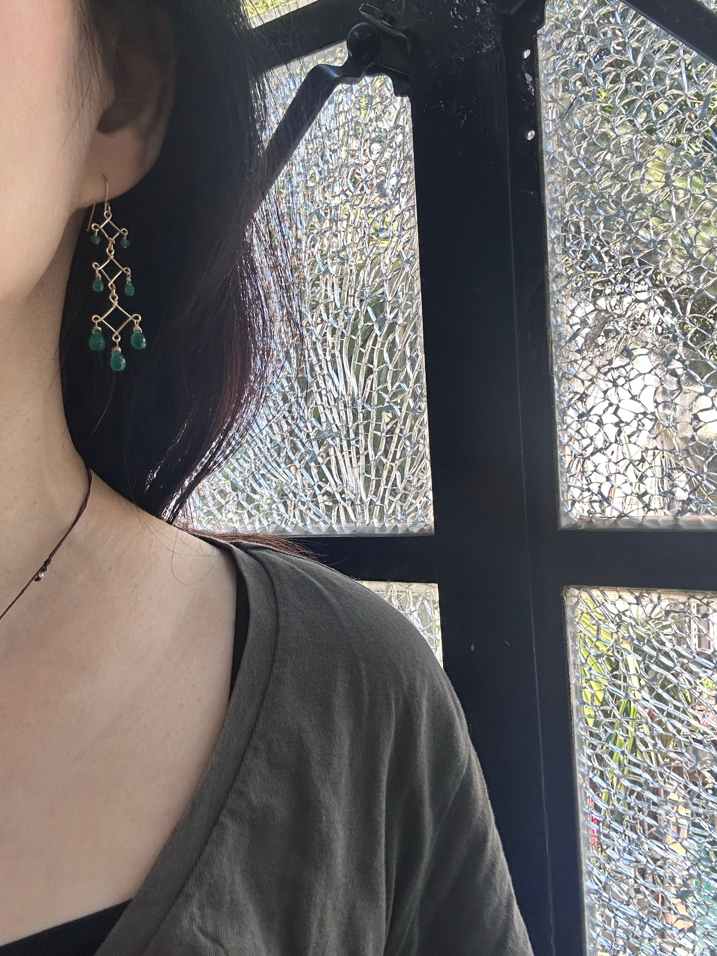 SpoiledBrat Jewelry Chandelier系列 | 长款三层吊灯绿玉髓耳环