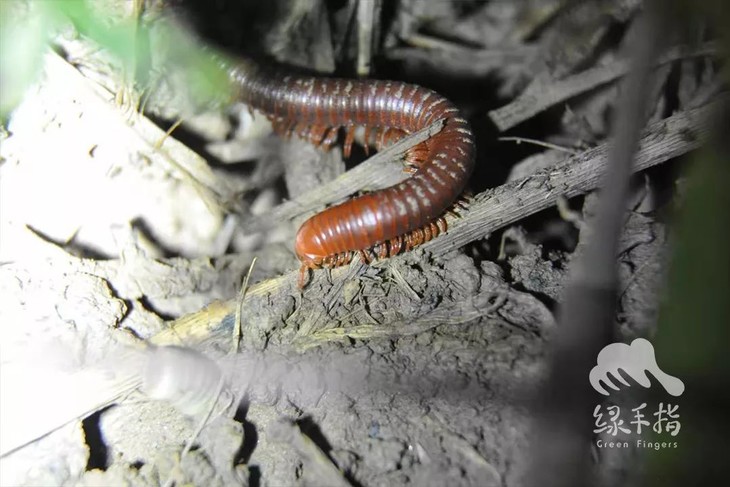半截身子匿入夜幕的千足虫