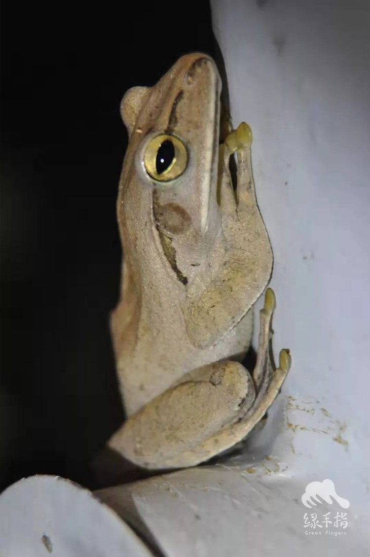趴在灌溉管道上的树蛙
