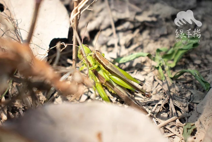 在绿手指市场部办公室前抱双的稻蝗