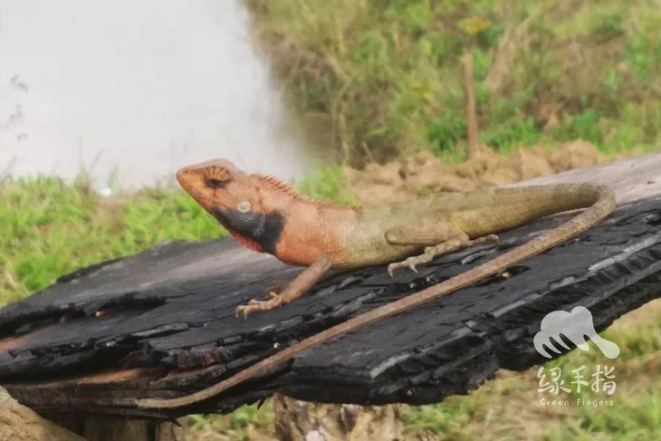 鱼塘边的变色树蜥
