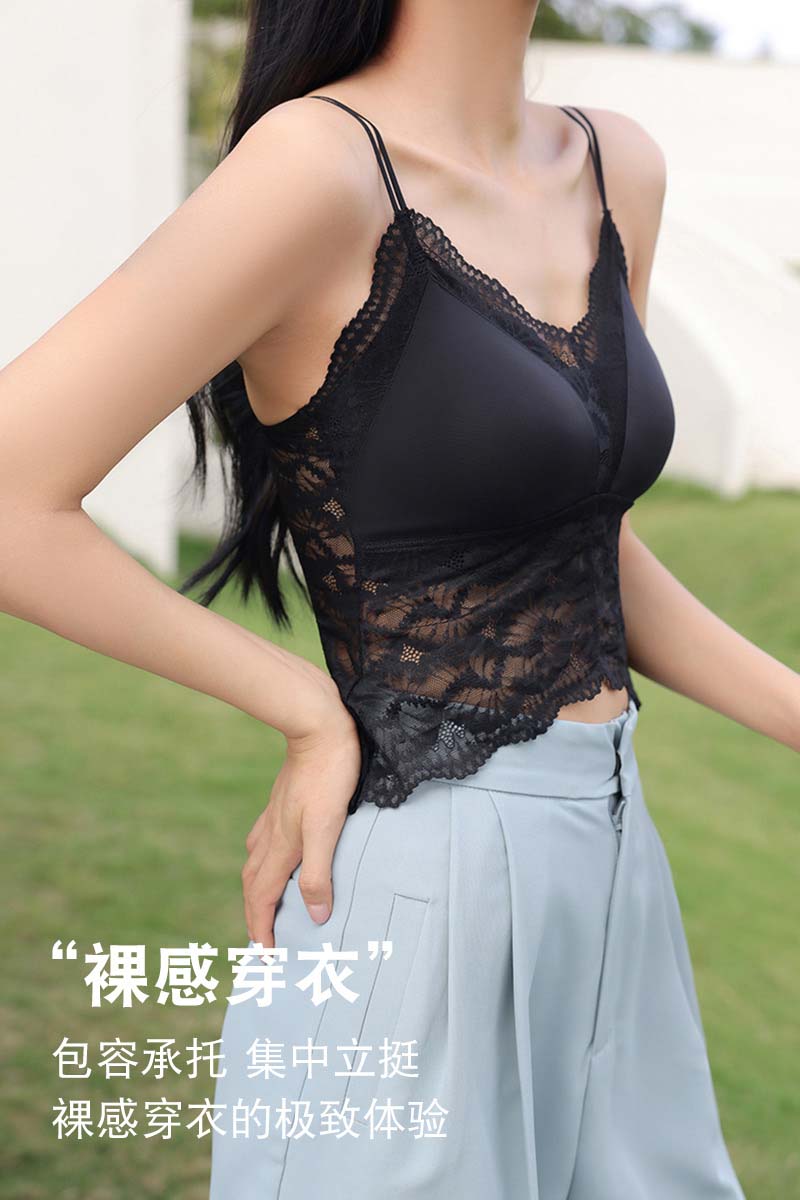 「K」洛诗琳44952气质蕾丝吊带2025夏季杯垫一体打底美背上衣4102