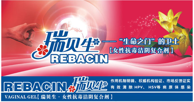 瑞贝生(REBACIN)是由美国森瑞生命科学研究所研制、中国森瑞谱生产的妇科外用产品,已获国家发明专利授权(ZL201410541305.3),部分研究成果分别在第26届(2010·加拿大)、27届(2011·德国)、28届(2012·波多黎各)、29届(2014·美国)、30届(2015·葡萄牙)、31届(2017·南非)、32届(2018·悉尼)和33届(2020·西班牙)“国际HPV学术会议暨宫颈癌防治与公共健康研讨会”上正式发表。