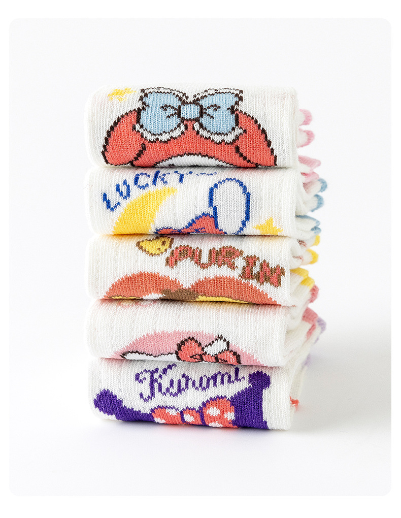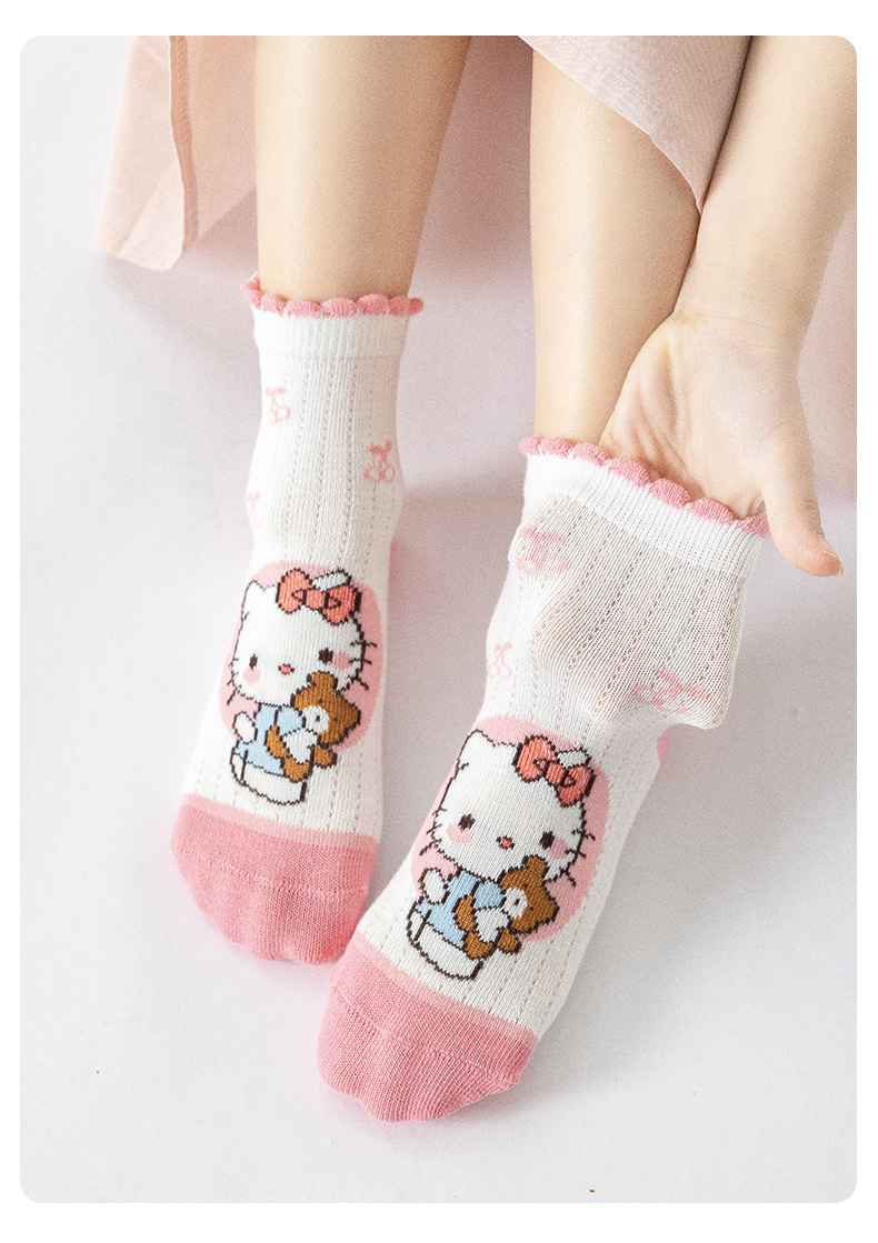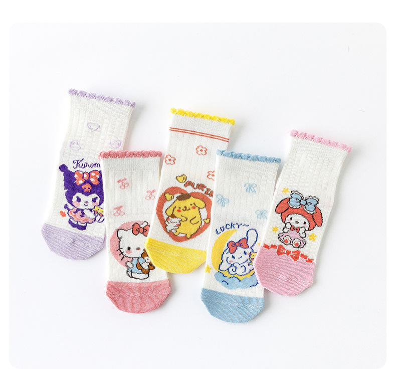 【春夏款,网眼卡通袜~】五双装!2025新款春夏三丽鸥网眼儿童袜子 粉色女童吸汗透气 男童宝宝中筒袜-QQ