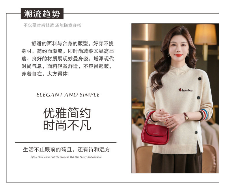 CCC101-741毛衣女秋冬高级感内搭可外穿针织衫2025新款半高领打底衫洋气时髦