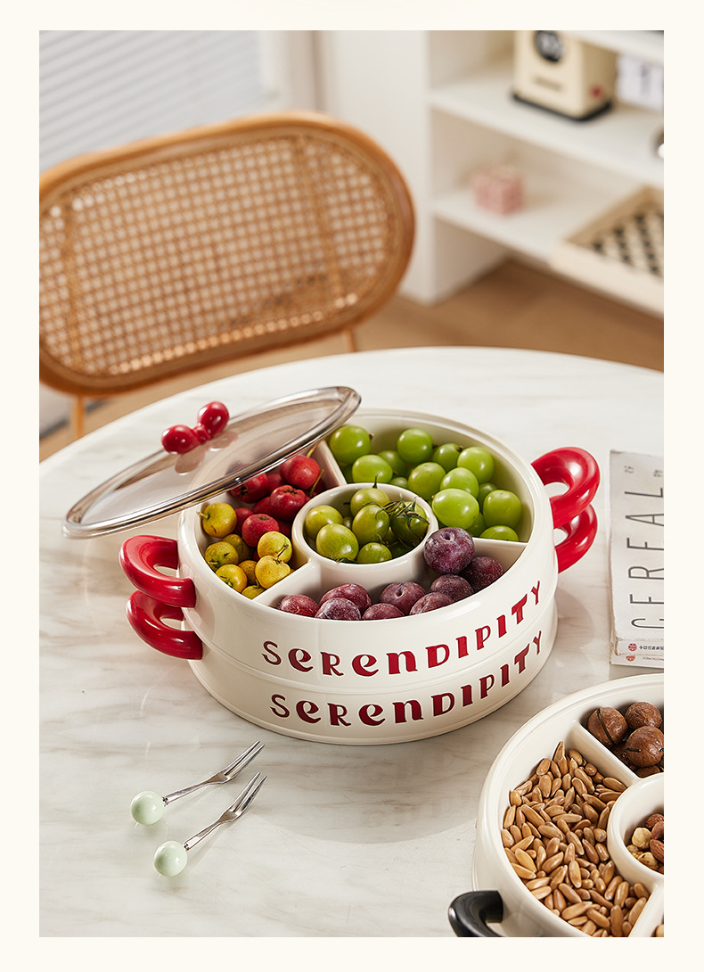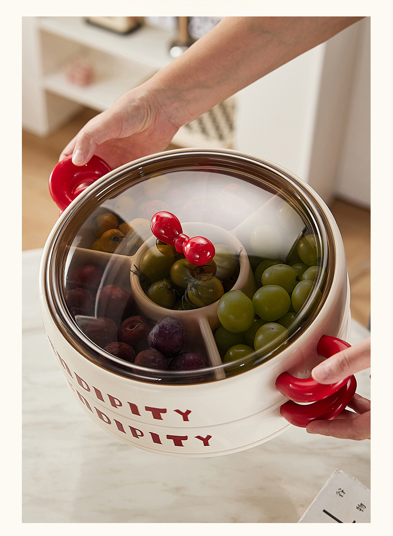 【复古美感,轻奢果盘】蝴蝶结干果盘 多层家用客厅分格带盖糖果盒 ins风零食摆放盘水果盘-QQ