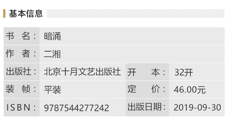 《暗涌》是北美新锐作家二湘继《狂流》之后的长篇新作,是其“命运交响曲”系列的第二部,依然将海外留学、工作和生活的背景融入写作。因为是切身经历,所以细节逼真、观感真实。