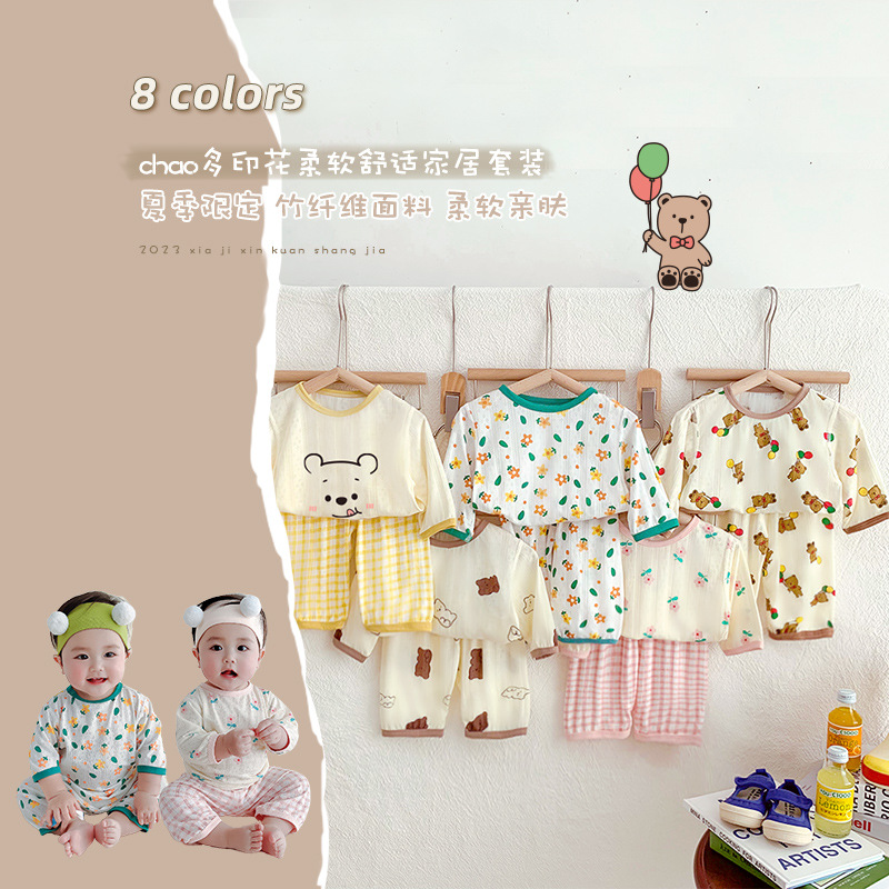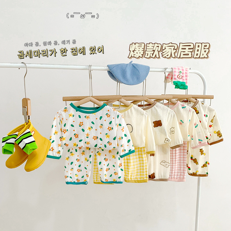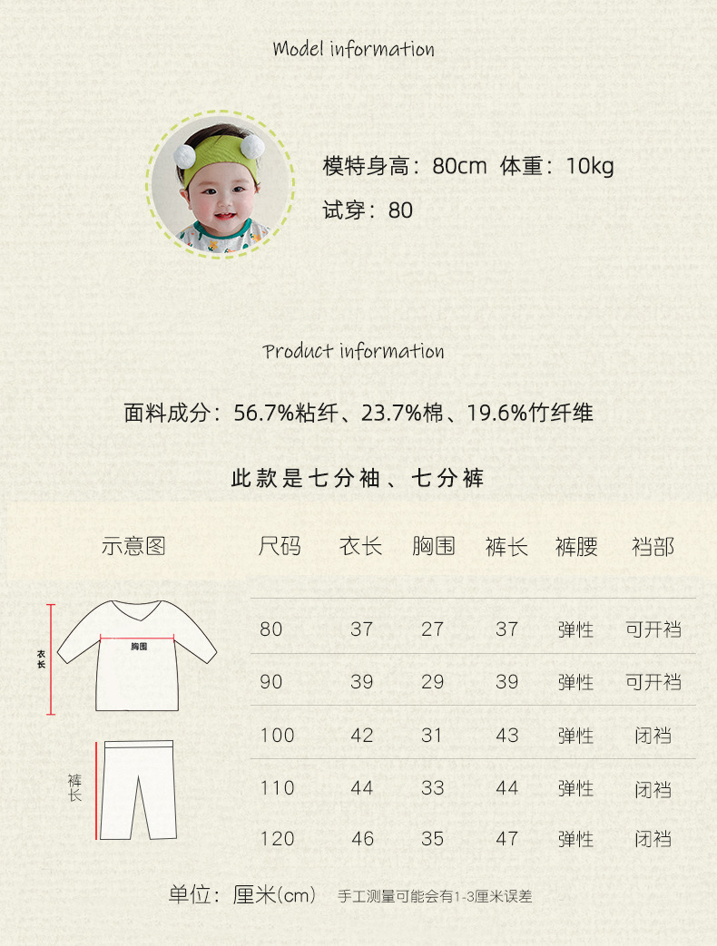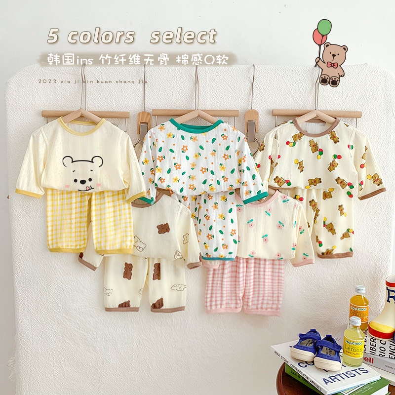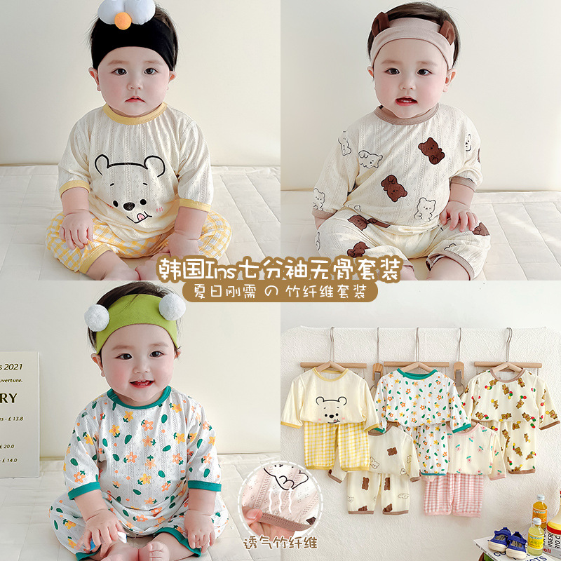 【捡漏价59.9两套】春夏韩系ins,儿童无骨七分袖套装,竹纤维空调服,家居服男女宝宝睡衣