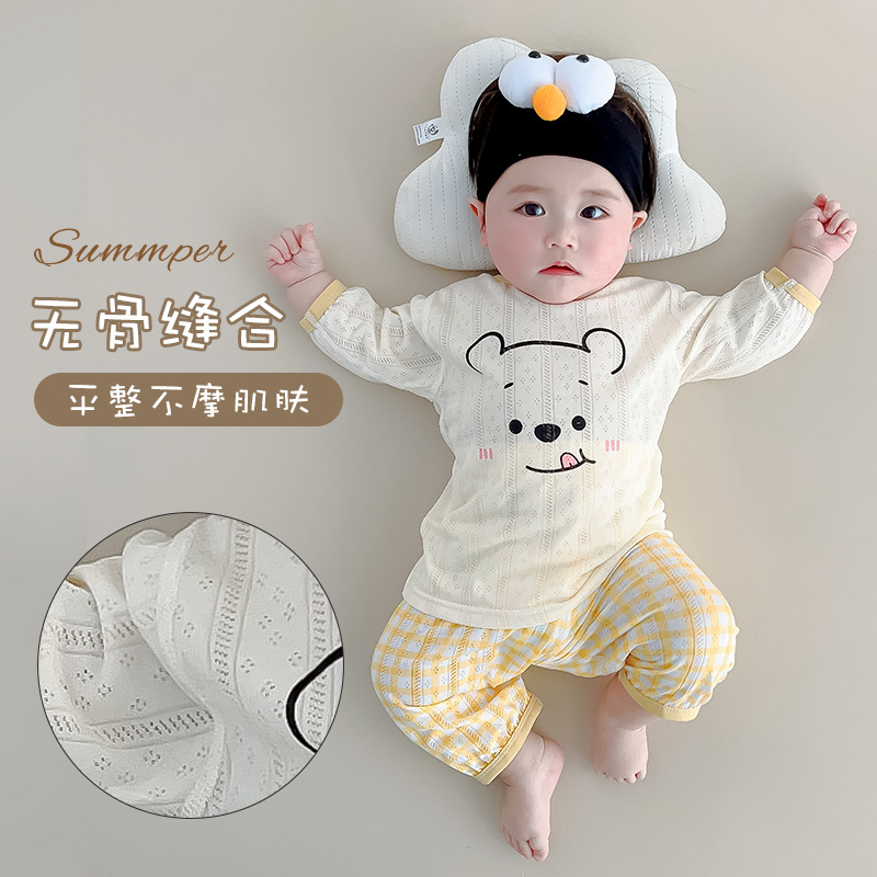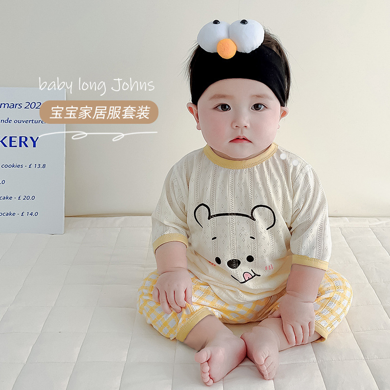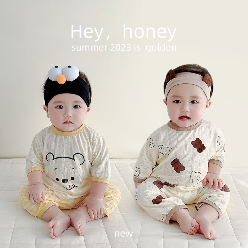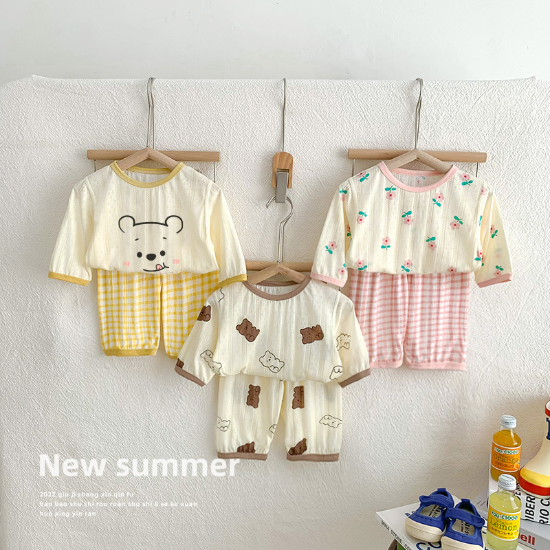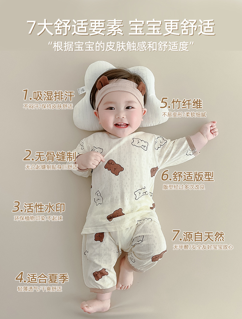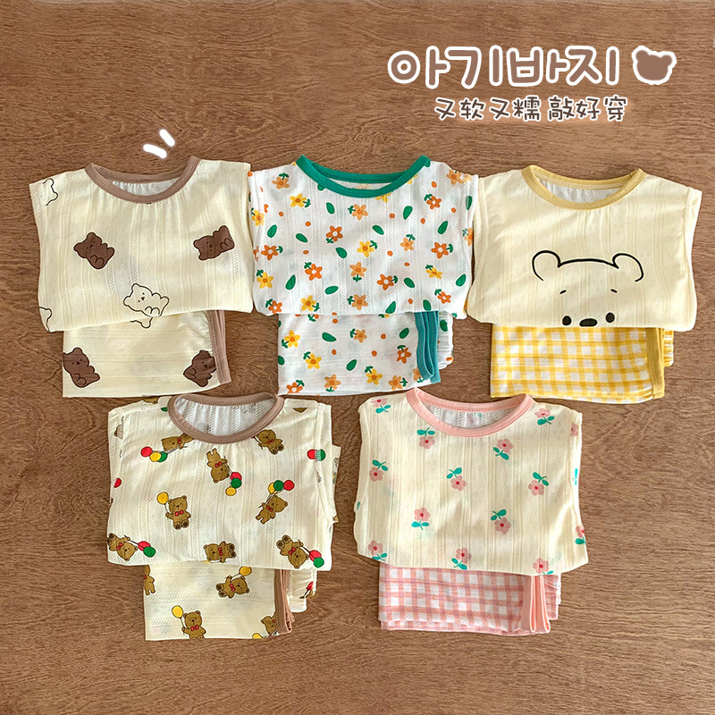 【捡漏价59.9两套】春夏韩系ins,儿童无骨七分袖套装,竹纤维空调服,家居服男女宝宝睡衣