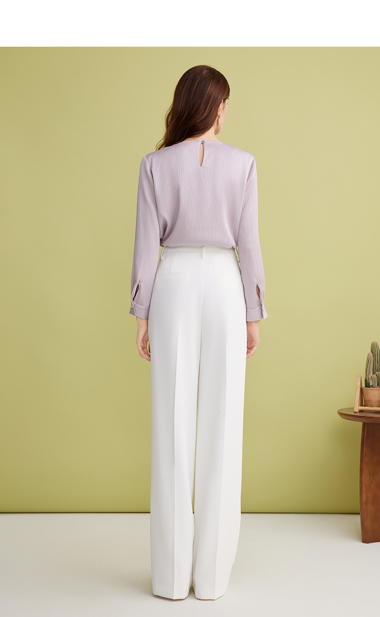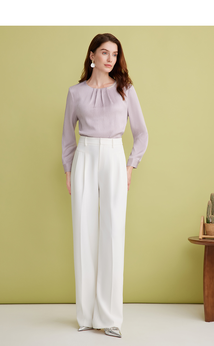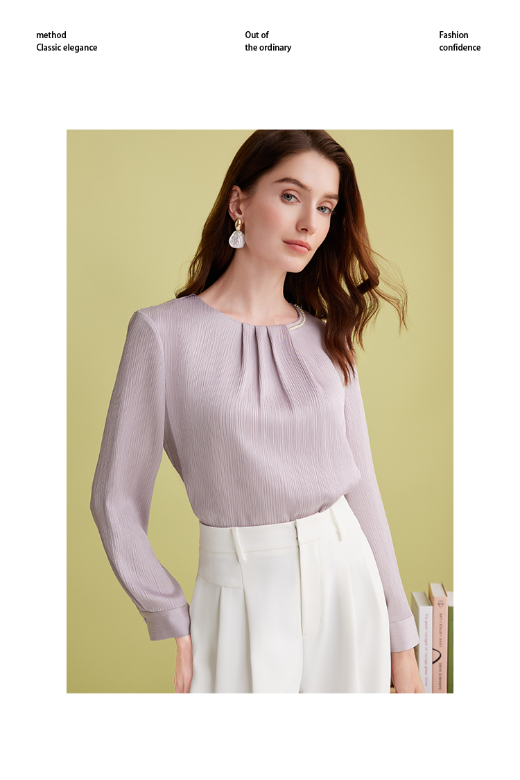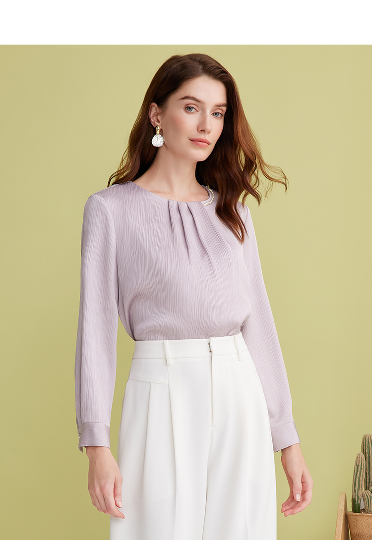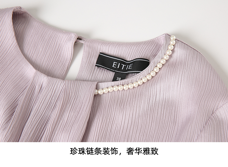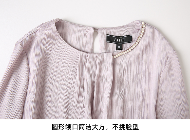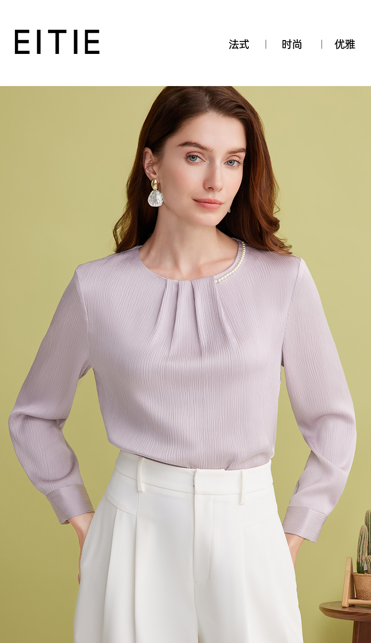 EITIE爱特爱温柔紫色气质钉珠直筒显瘦衬衫上衣2025春季新款A2513515