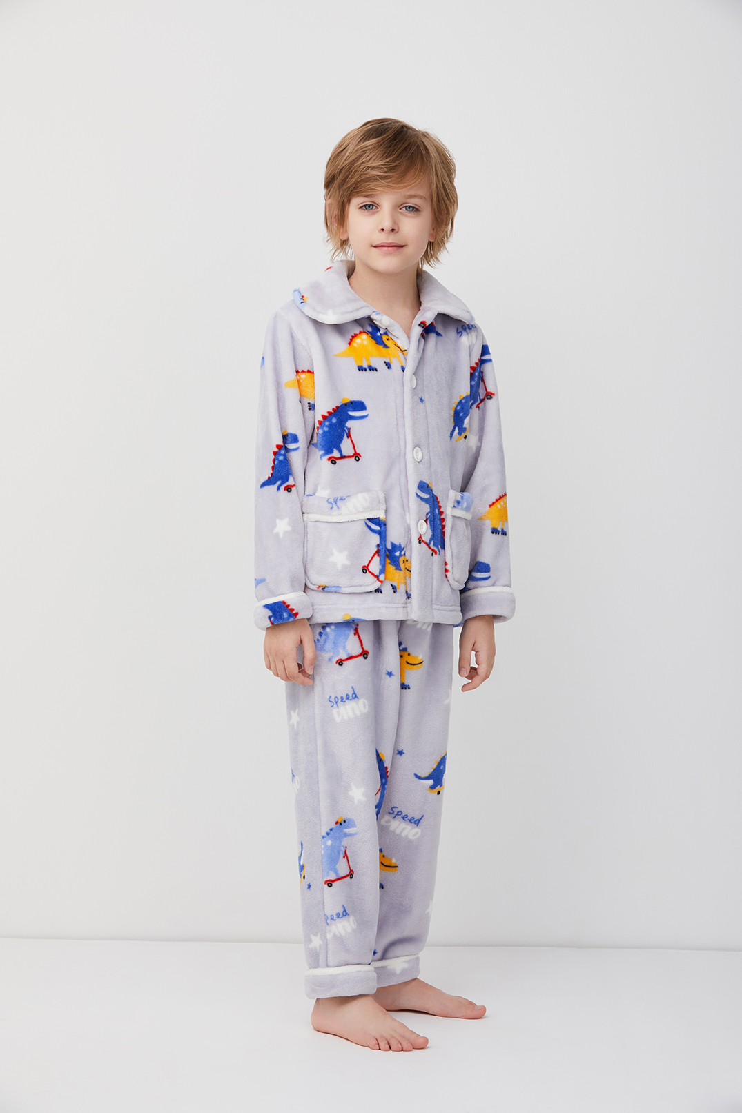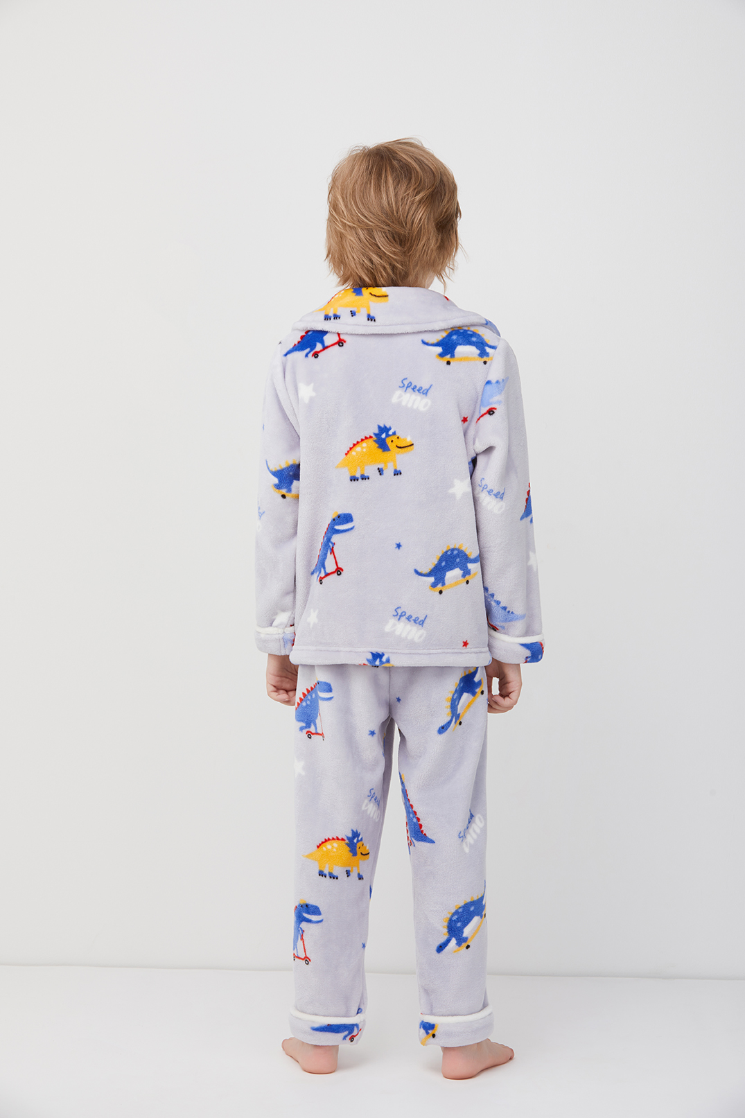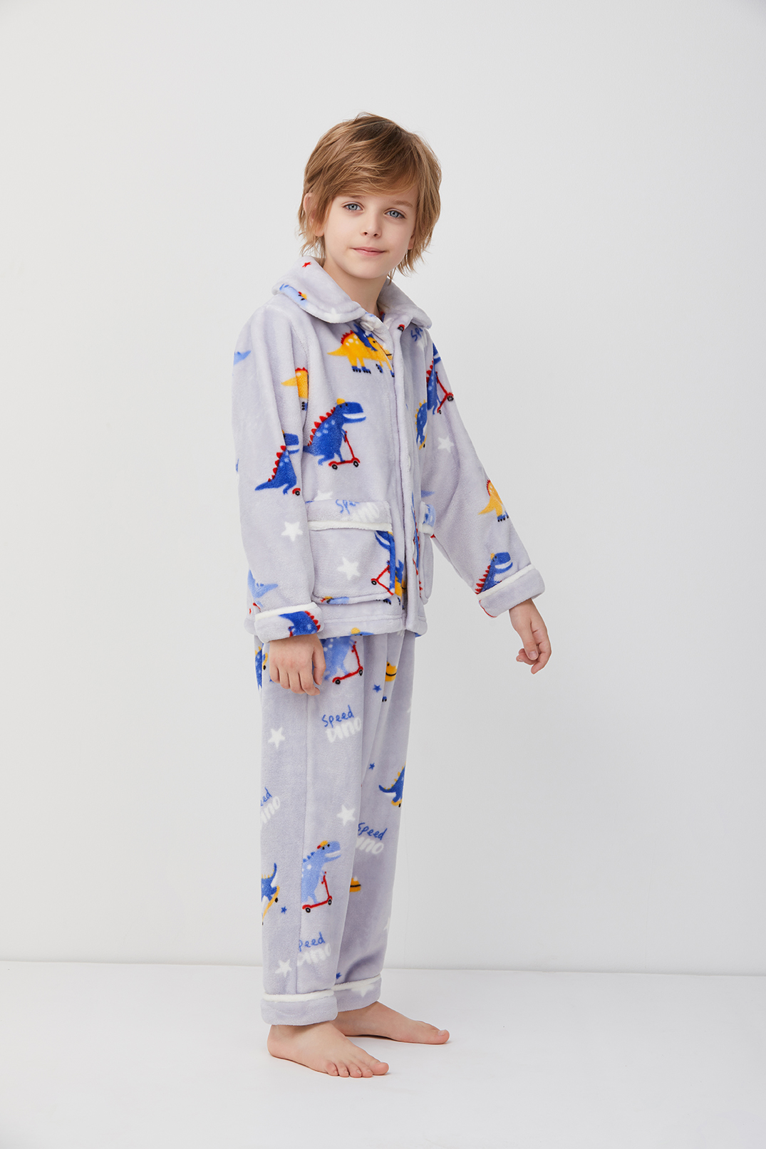 天空之城-AIMER KIDS-恐龙赛跑法兰绒厚开衫长袖家居服亲子外穿睡衣裤