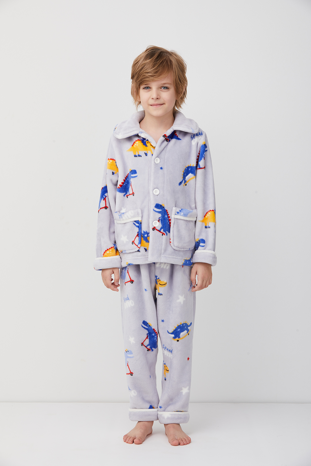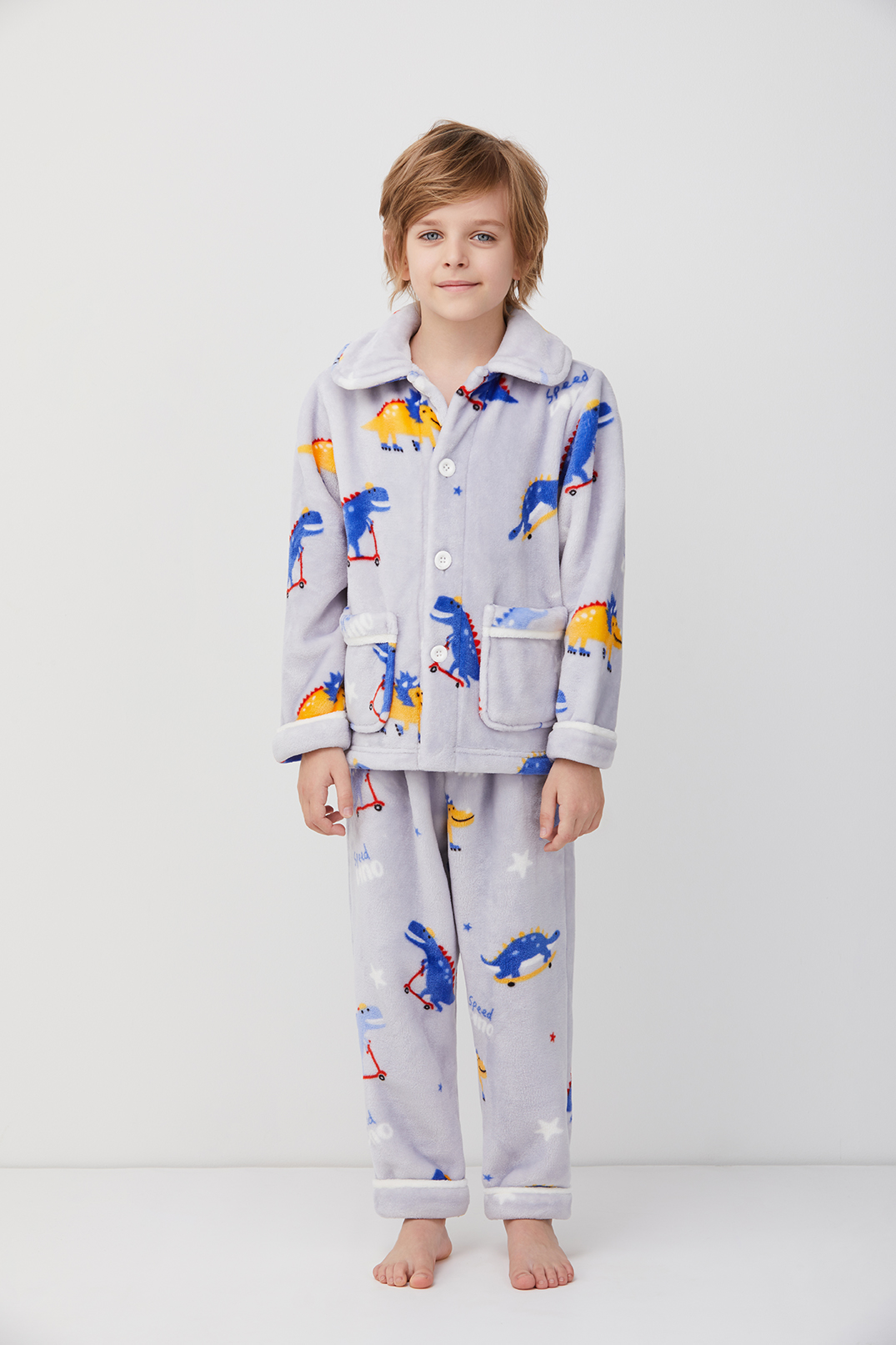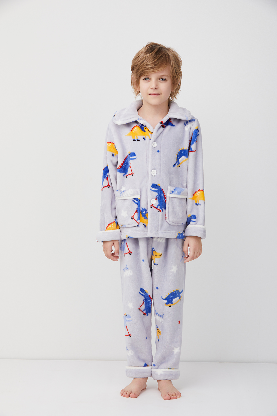天空之城-AIMER KIDS-恐龙赛跑法兰绒厚开衫长袖家居服亲子外穿睡衣裤
