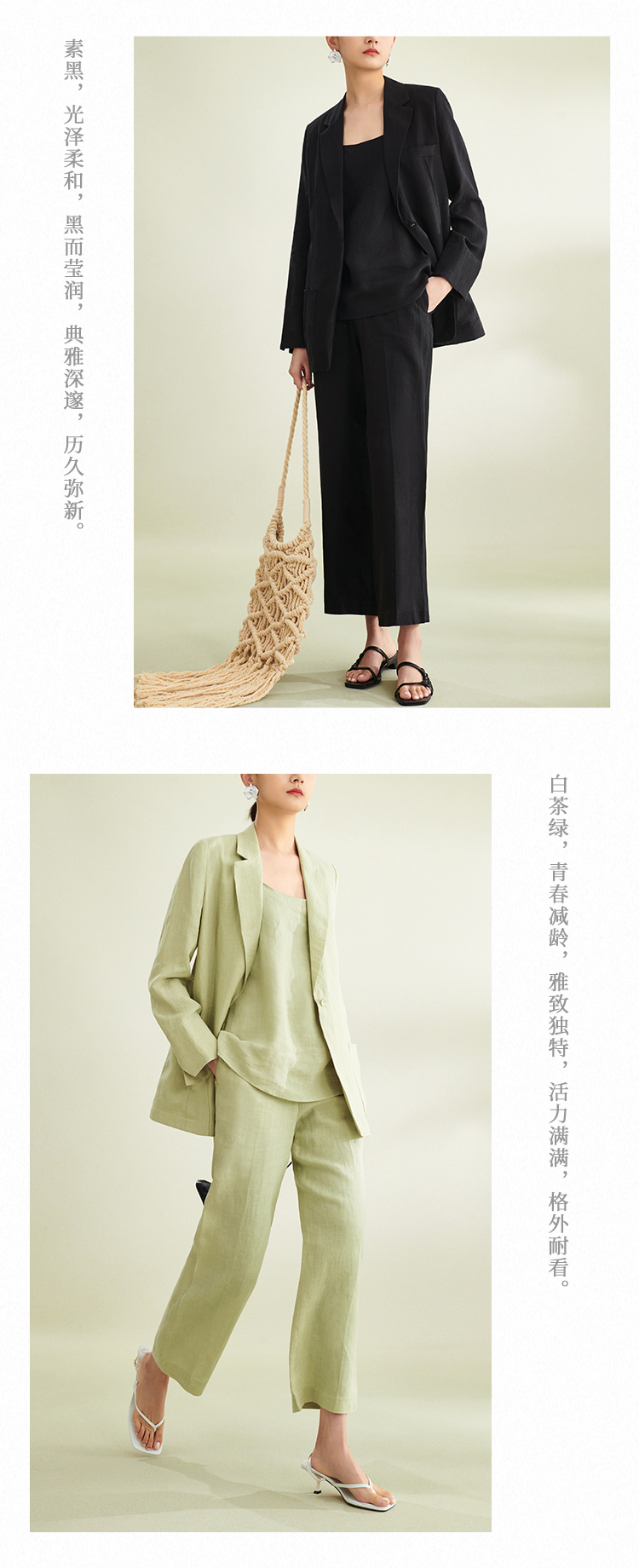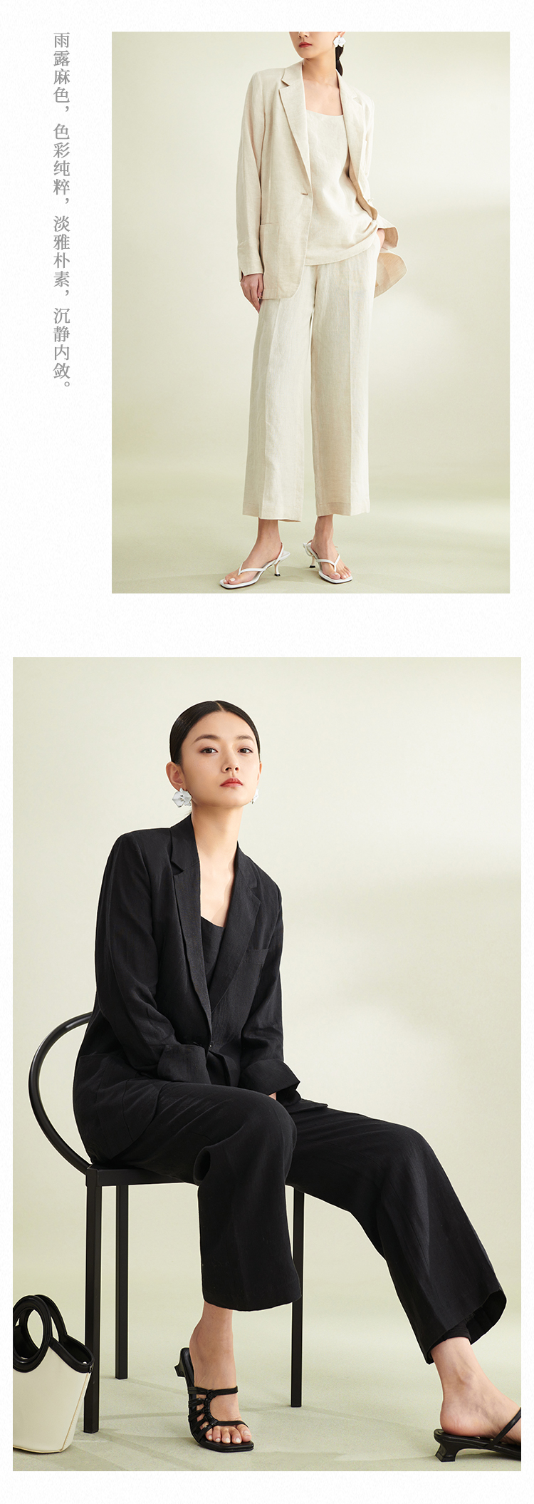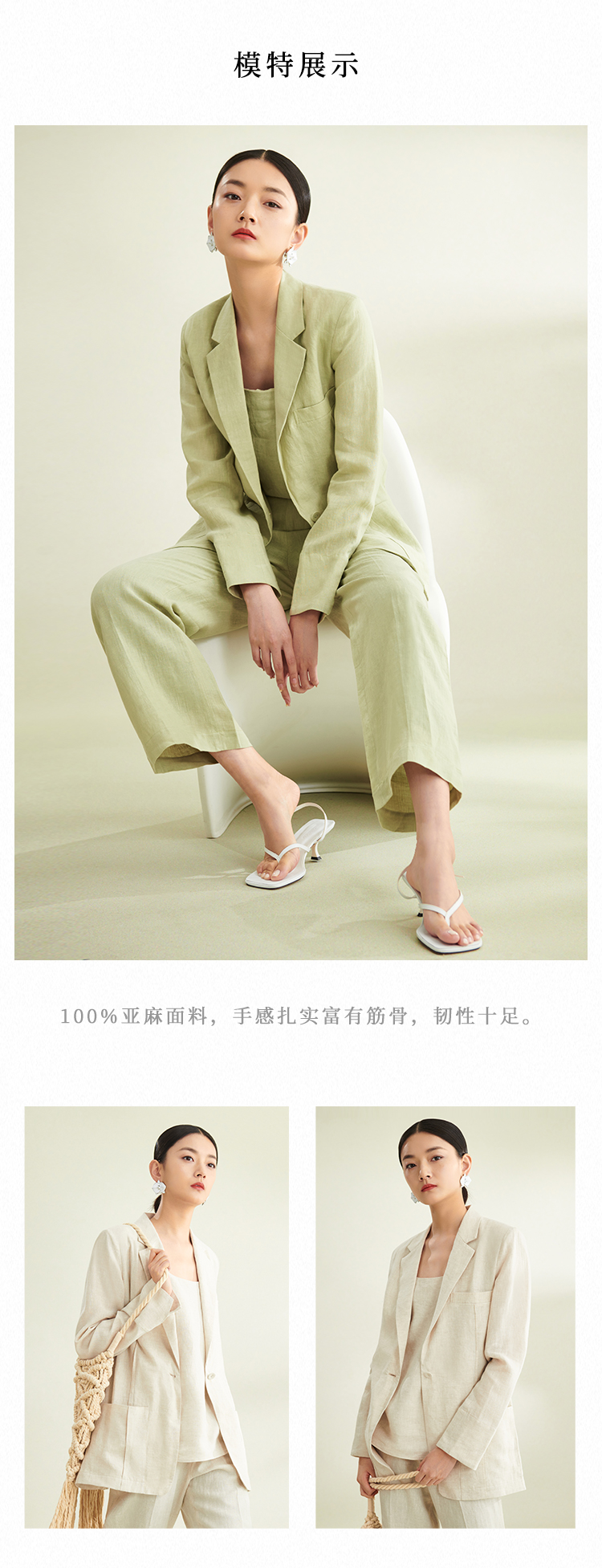 璞宿PUSU2023春夏新款亚麻西装套装女文艺休闲百搭棉麻上衣外套