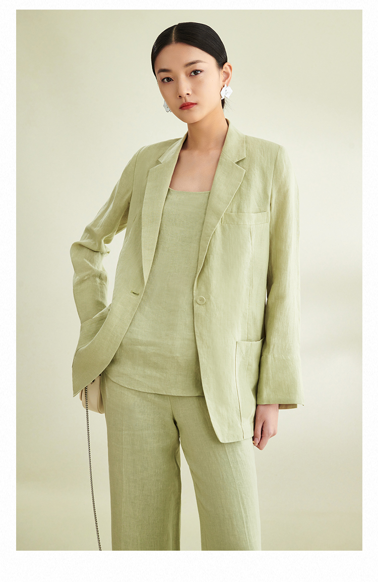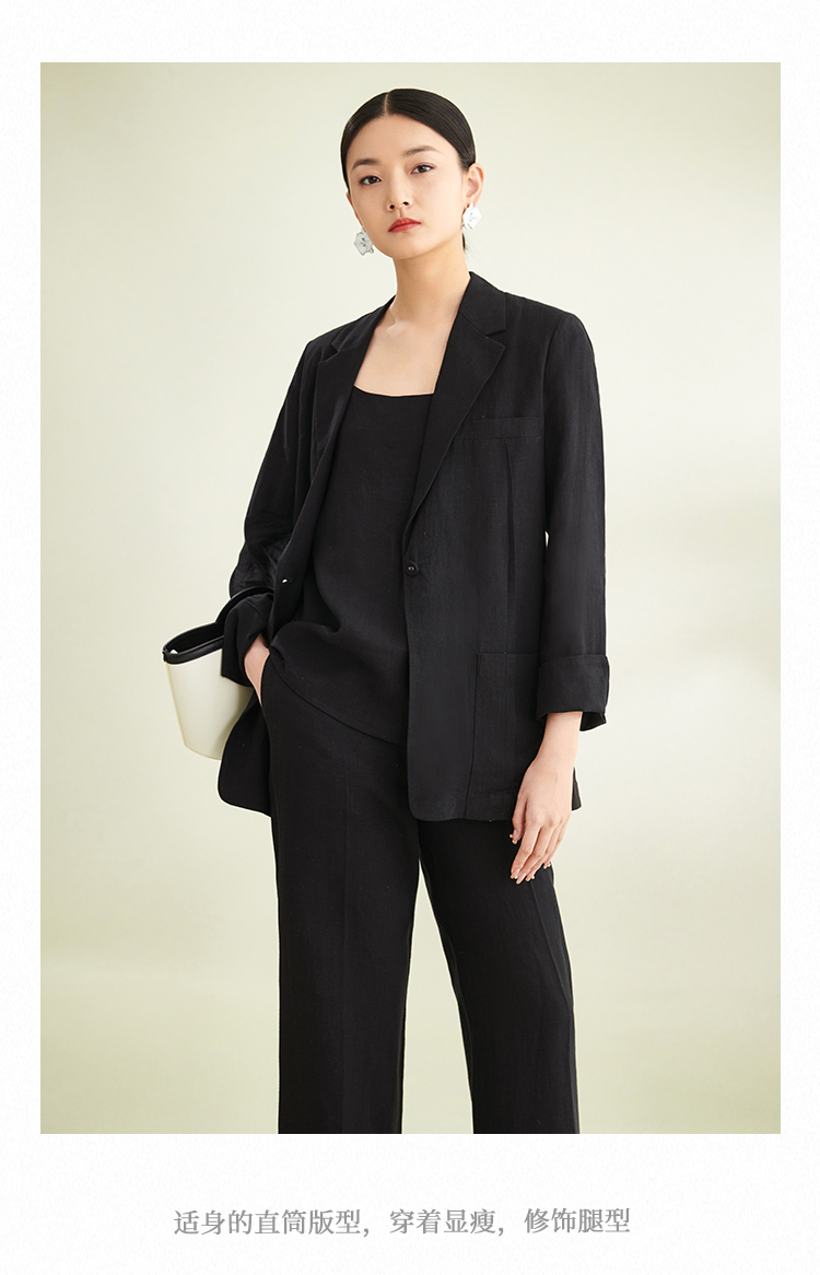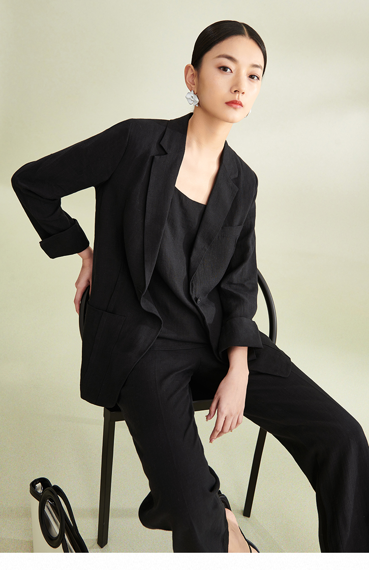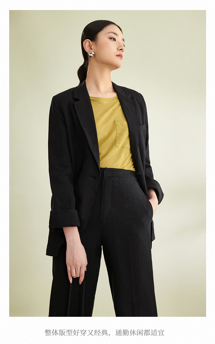 璞宿PUSU2023春夏新款亚麻西装套装女文艺休闲百搭棉麻上衣外套