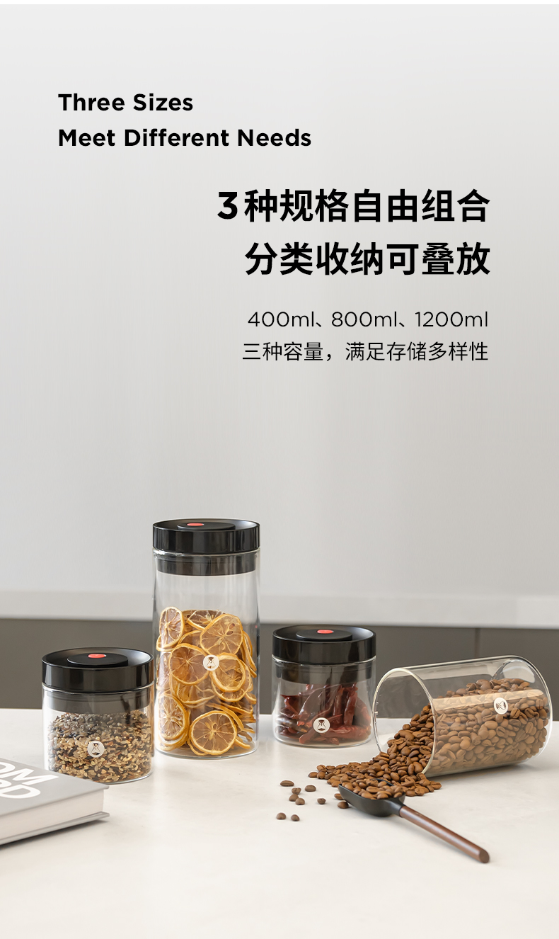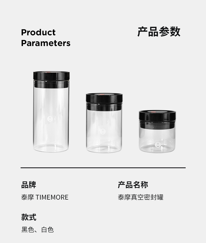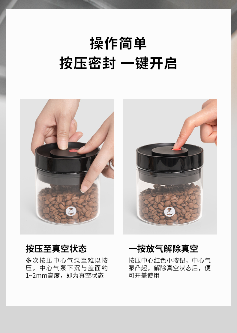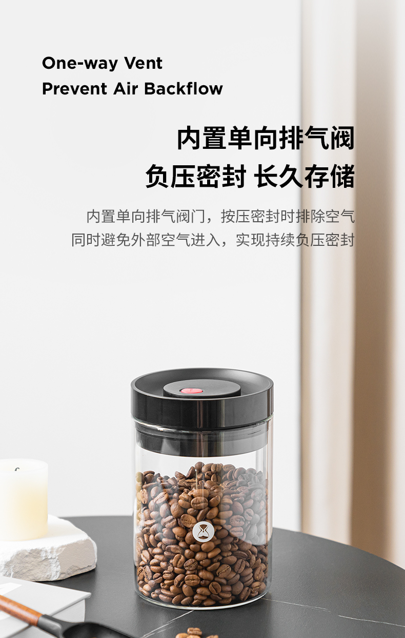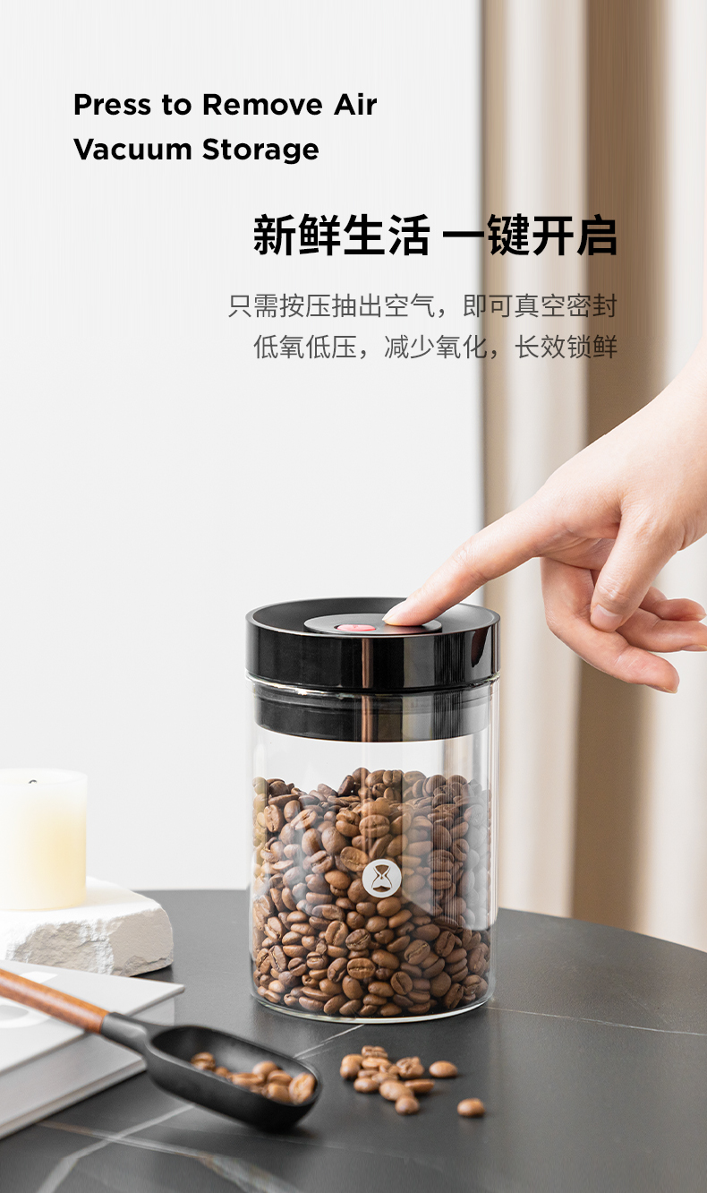 新款泰摩咖啡真空玻璃密封罐