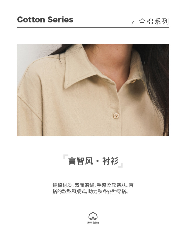 【秋冬新款全棉衬衫女士】慵懒感纯色长袖衬衣柔软亲肤高级感百搭上衣