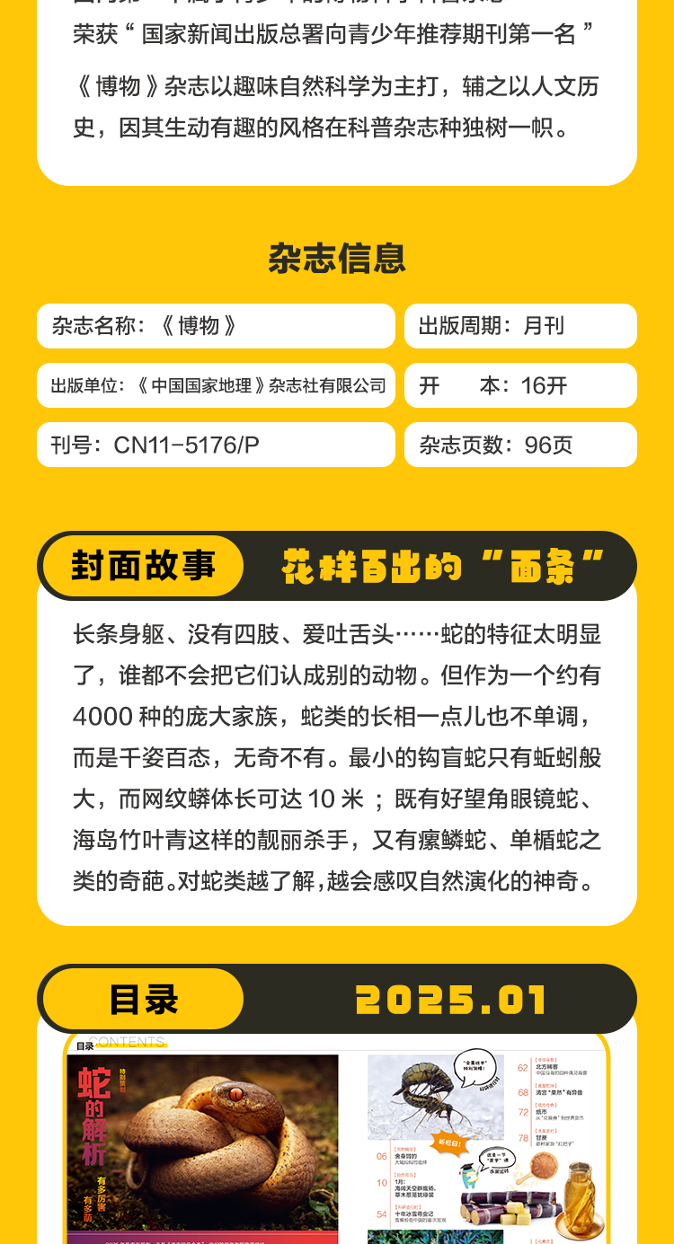 博物杂志 2025年1月刊 蛇 精美大拉页 博物大学 青少年科普杂志