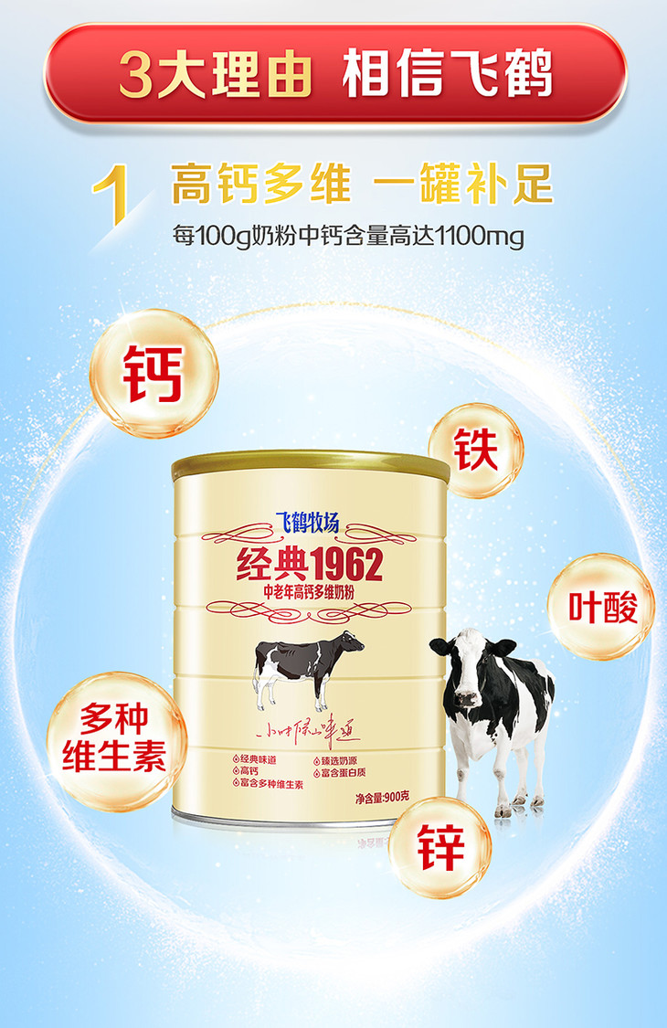 飞鹤牧场经典1962 中老年高钙多维奶粉900g