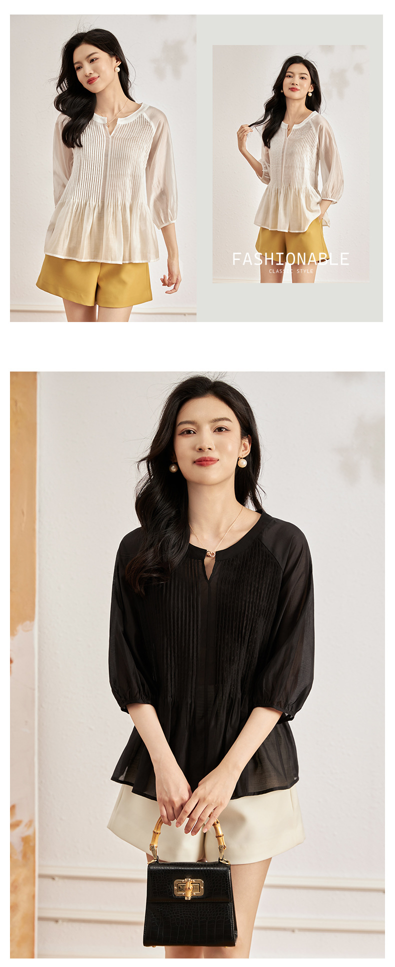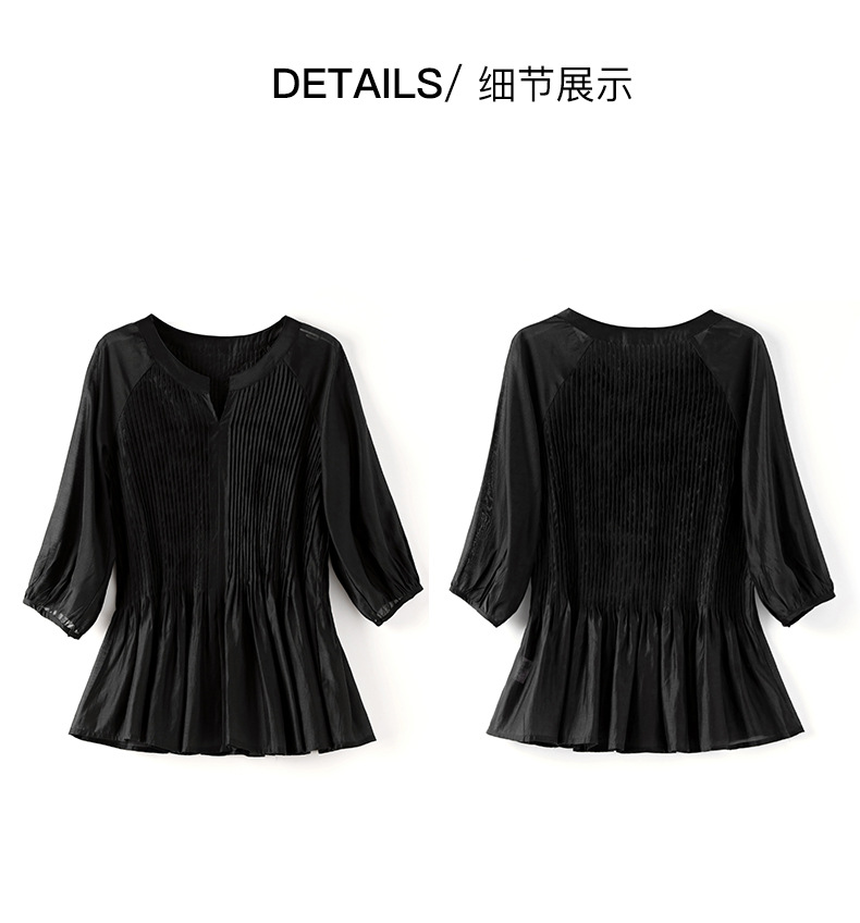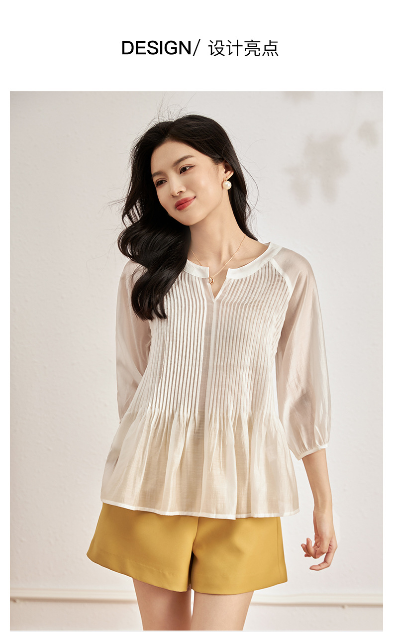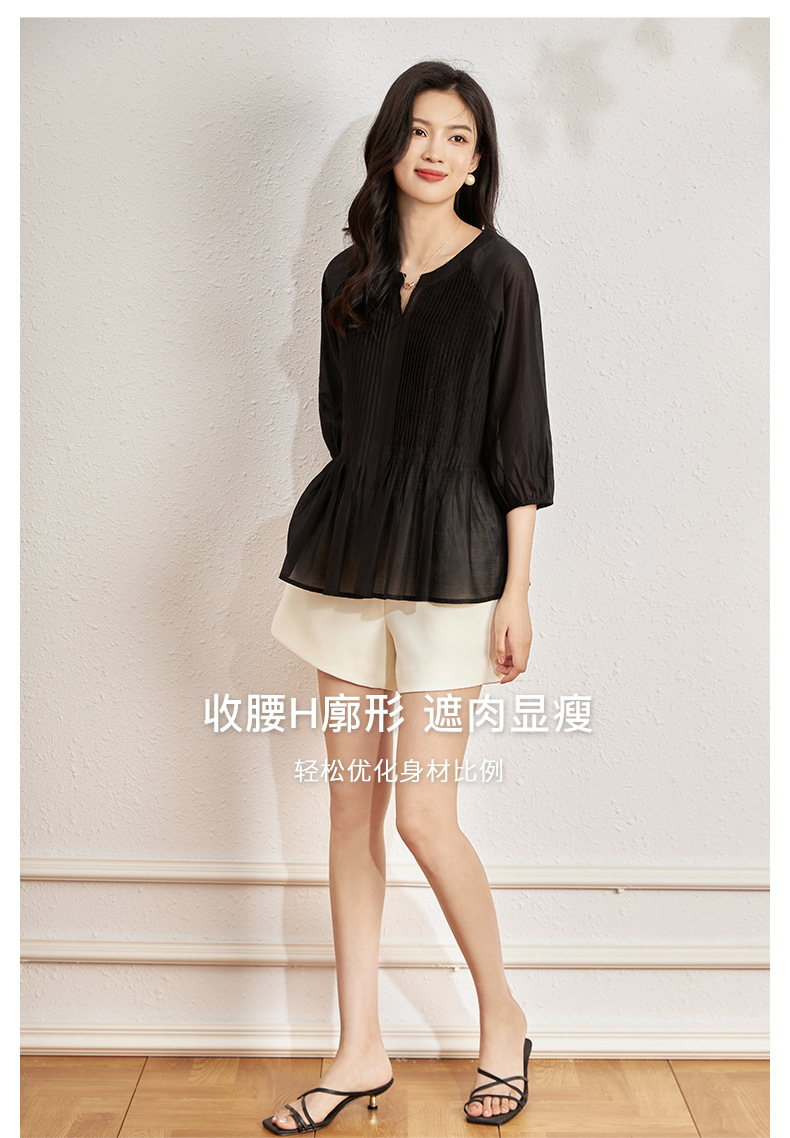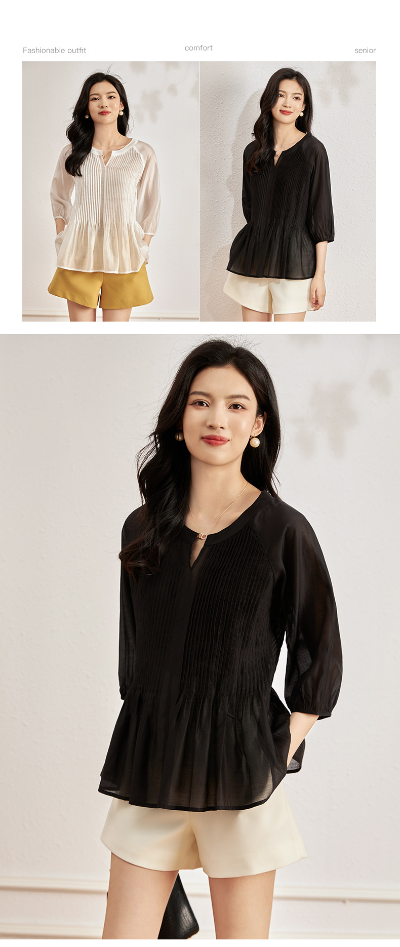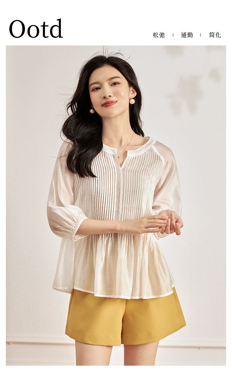 宽松通勤,法式压褶V领优雅遮肉显瘦气质女装上衣WLZD-2314410