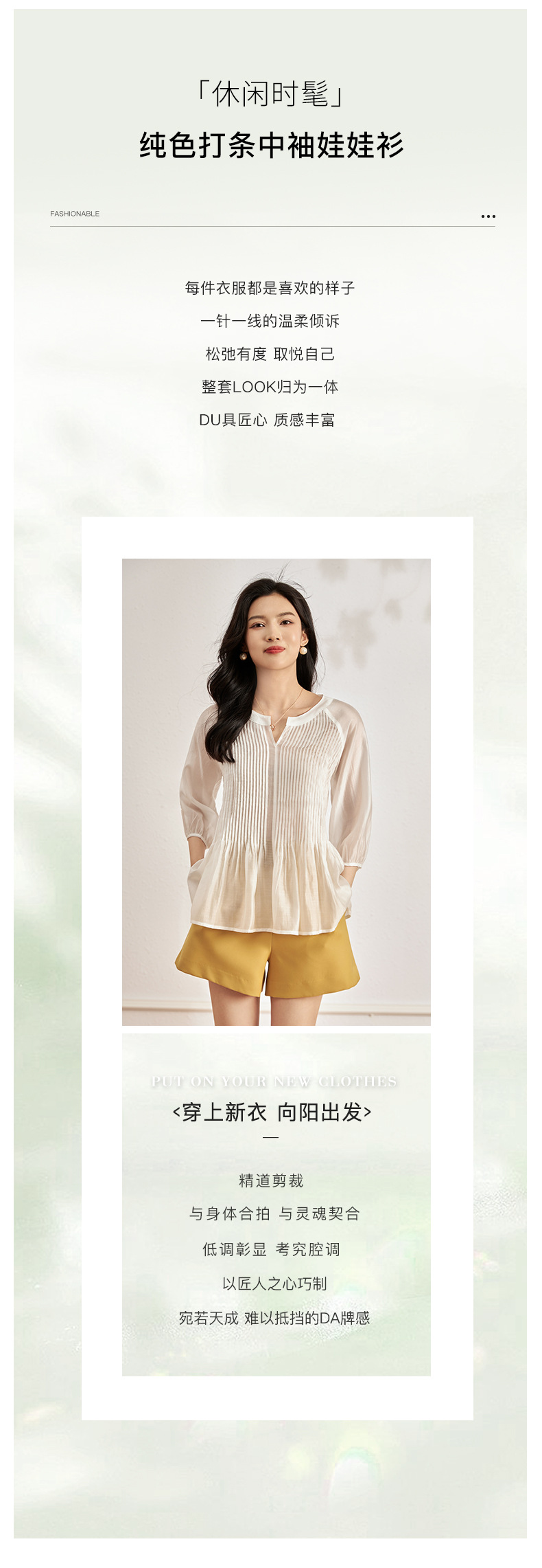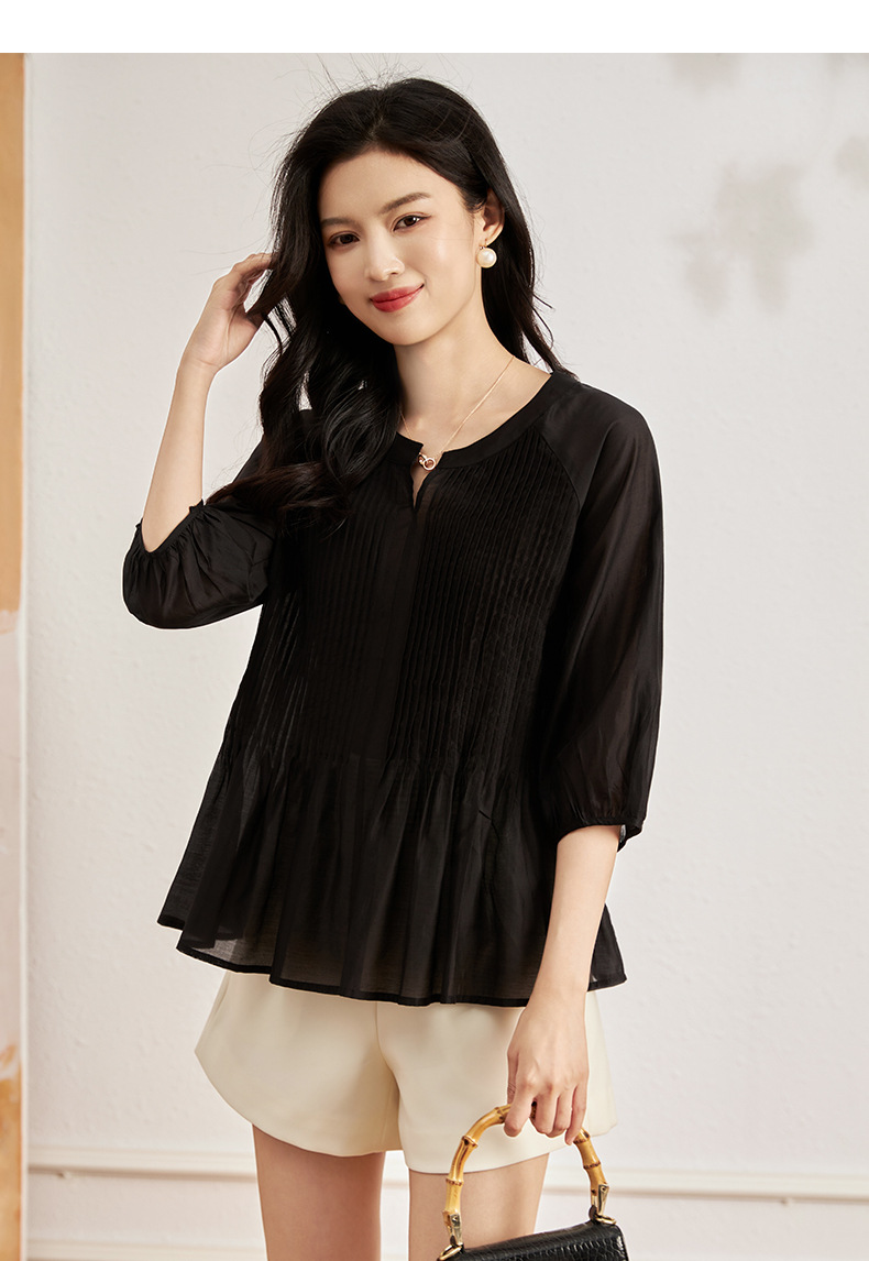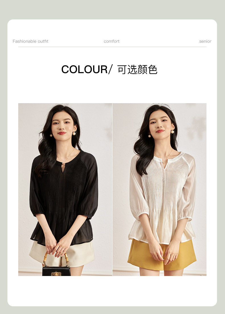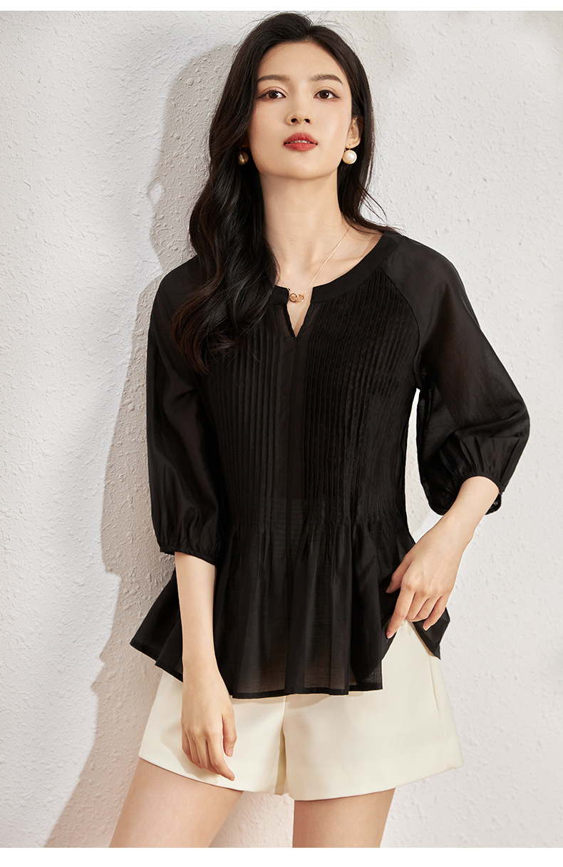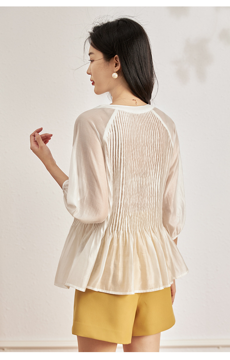 宽松通勤,法式压褶V领优雅遮肉显瘦气质女装上衣WLZD-2314410