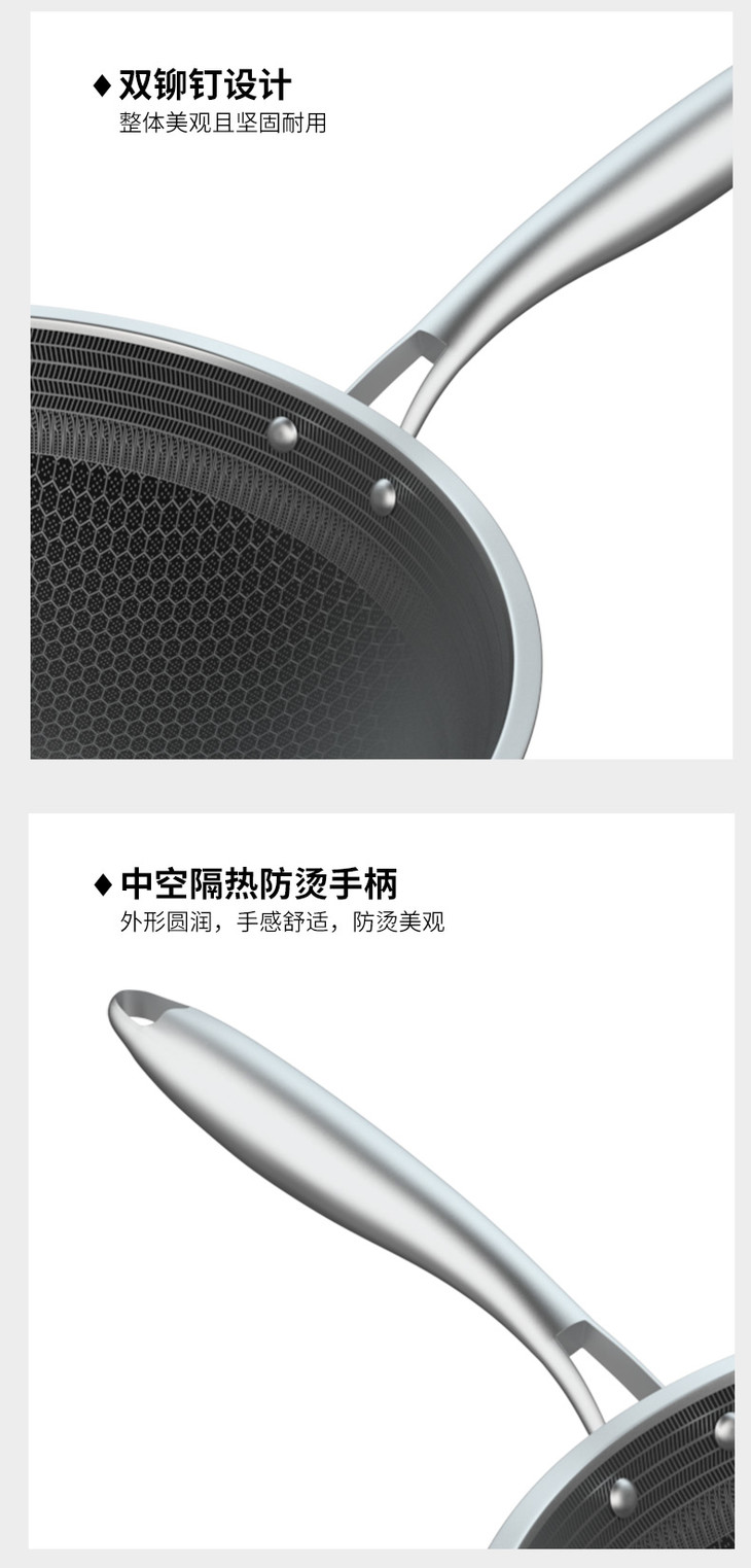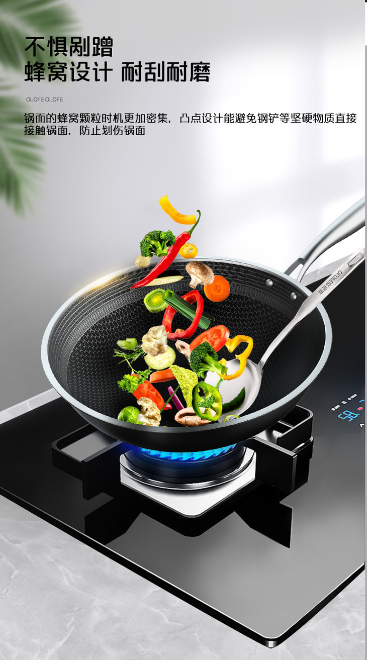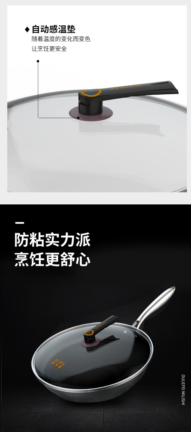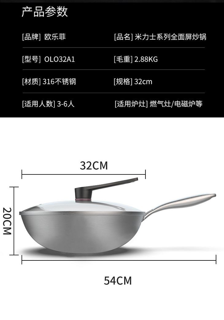 欧乐菲米力士蜂巢316不锈钢炒锅全面屏32cm