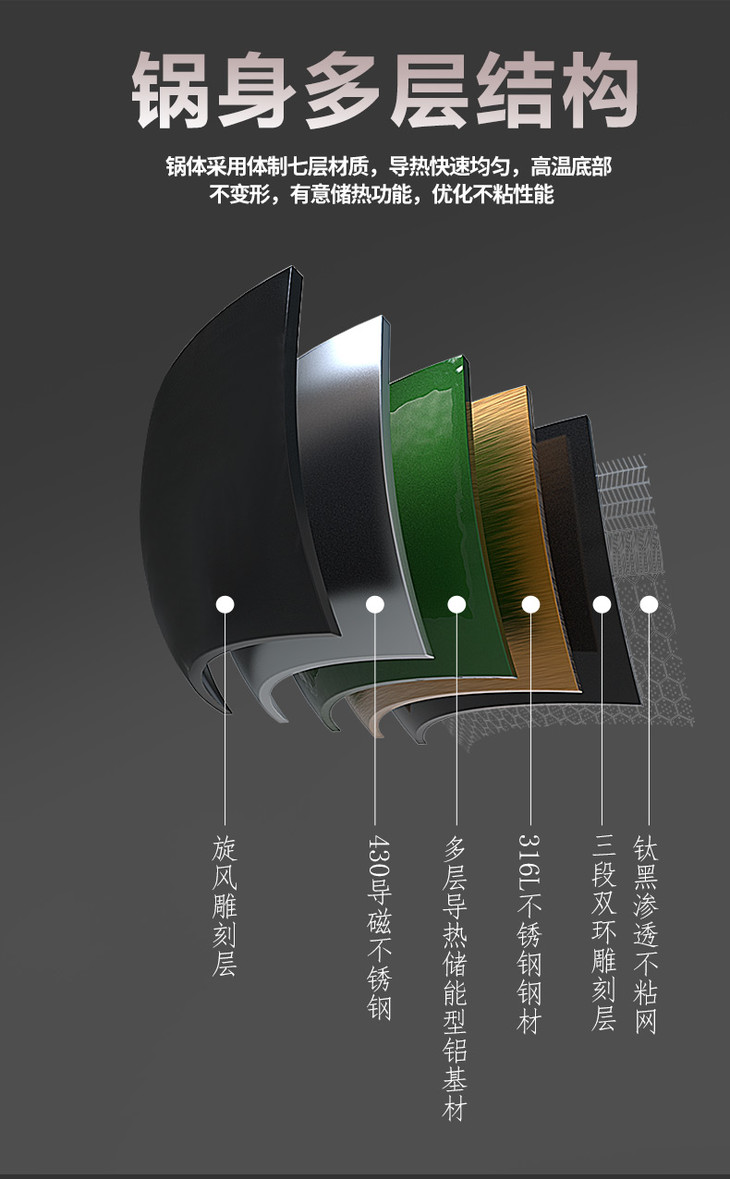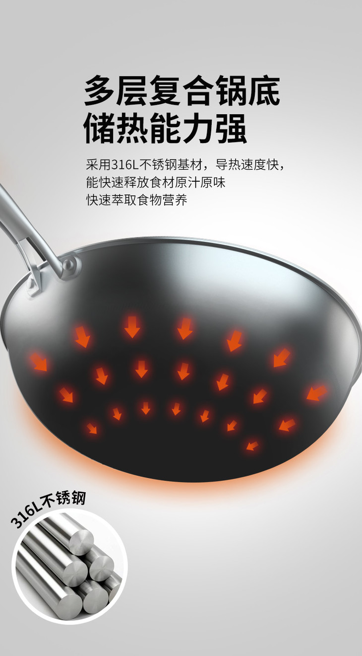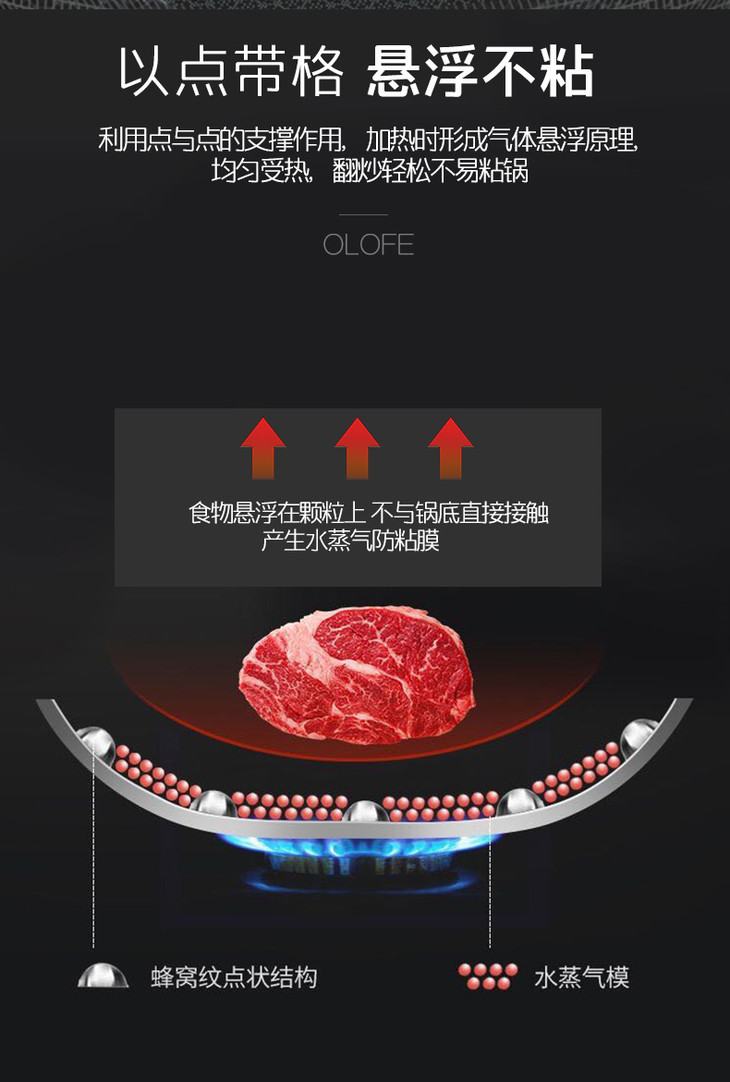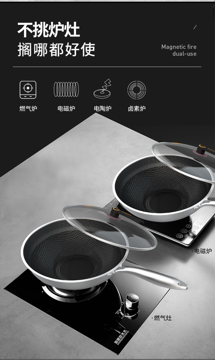 欧乐菲米力士蜂巢316不锈钢炒锅全面屏32cm