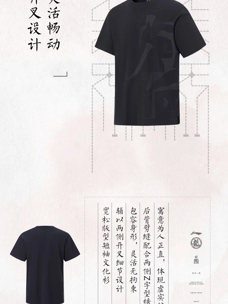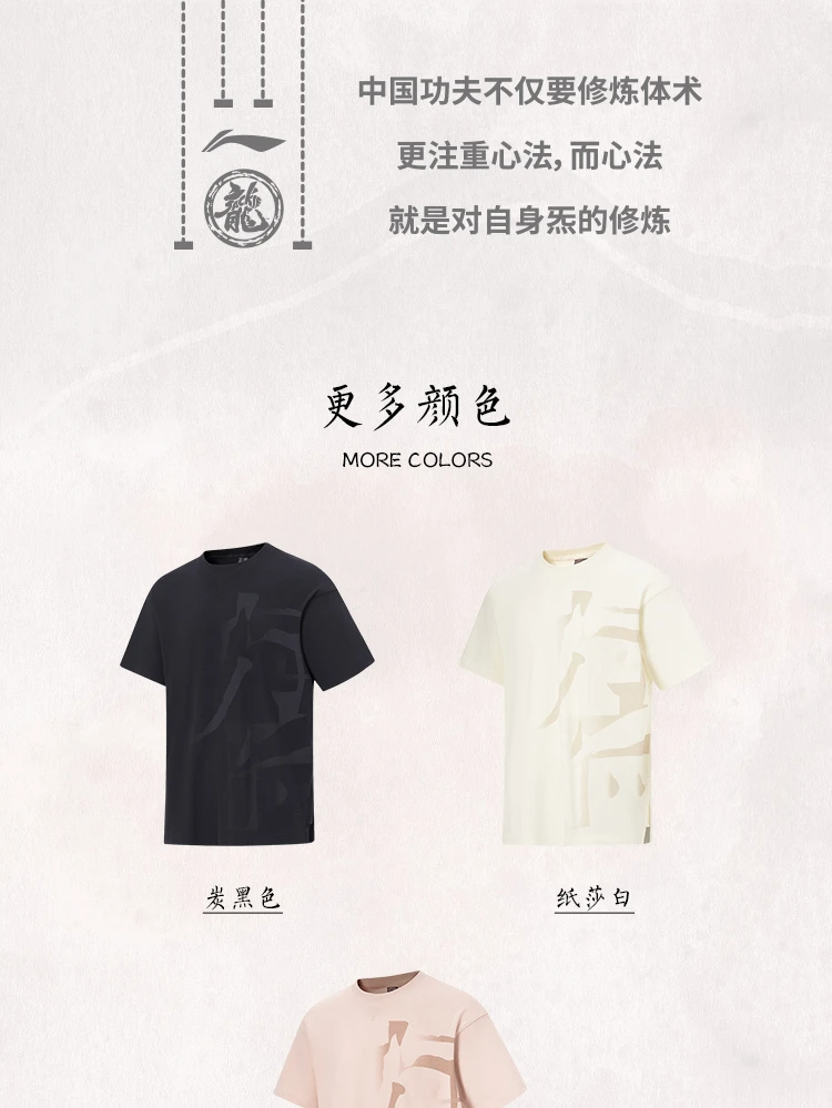 【L断码】李宁中国李宁 X 成龙功夫系列丨短袖T恤男子新款运动上衣AHST067【库存有限,如无货将做退款,介意慎拍】
