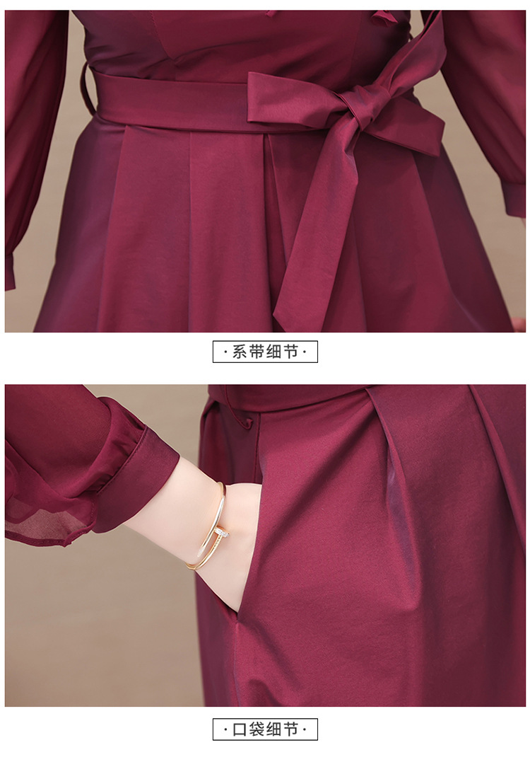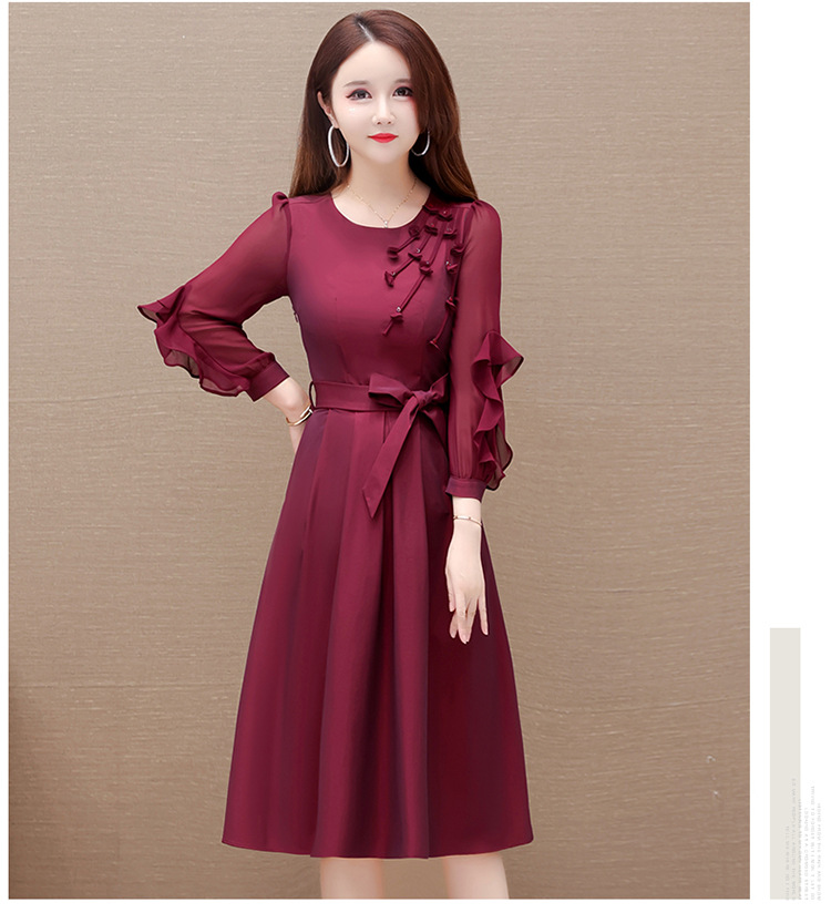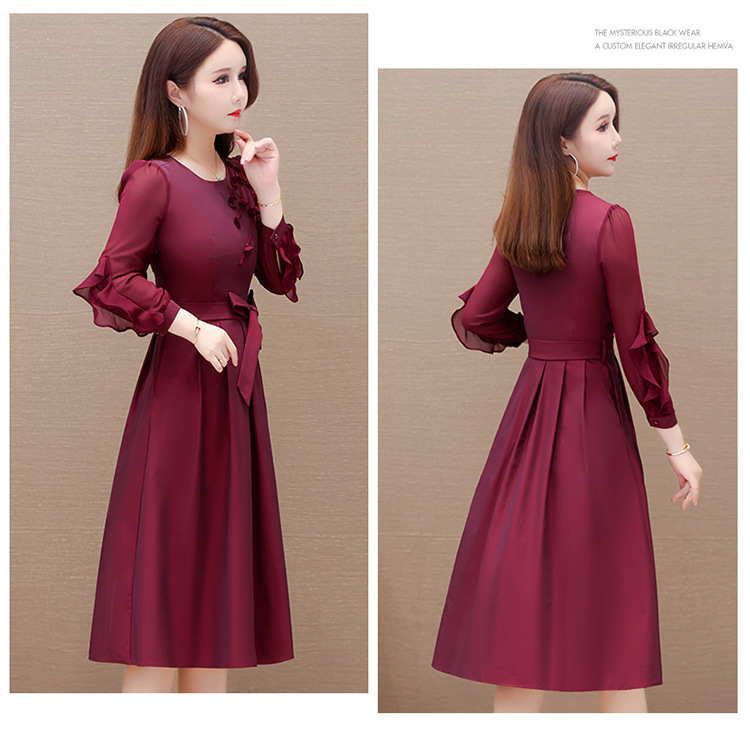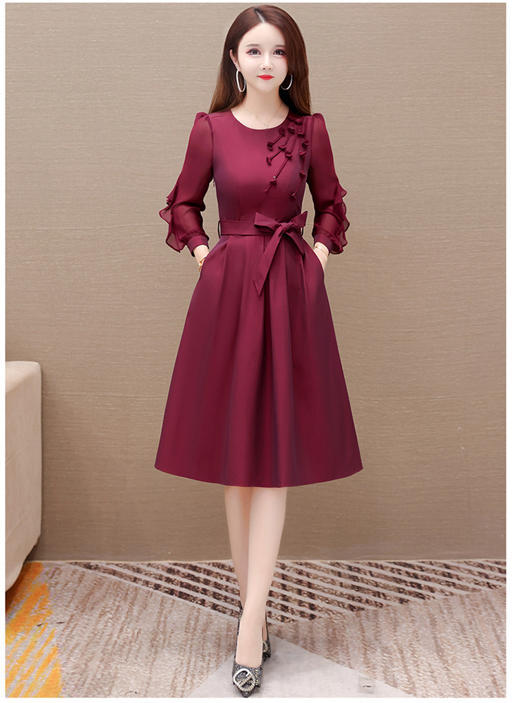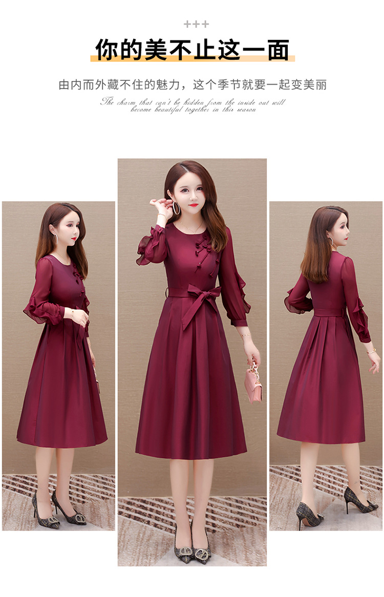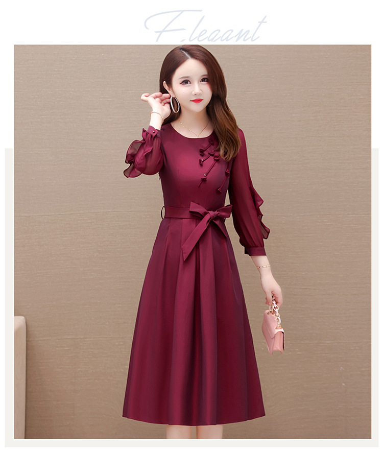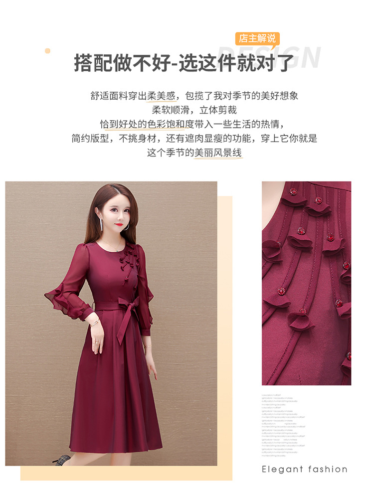 QYM 23T189-Y气质连衣裙妈妈装收腰时尚纯色A字裙
