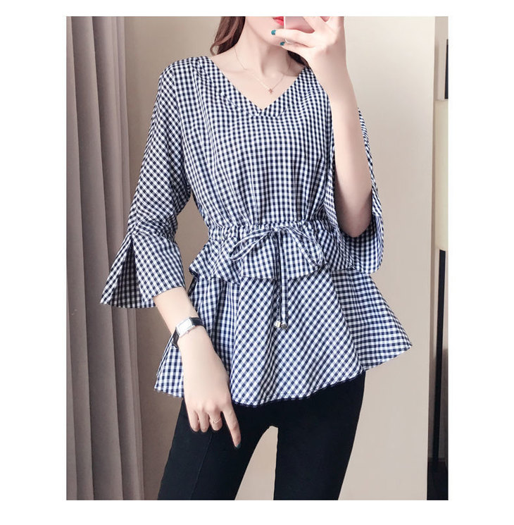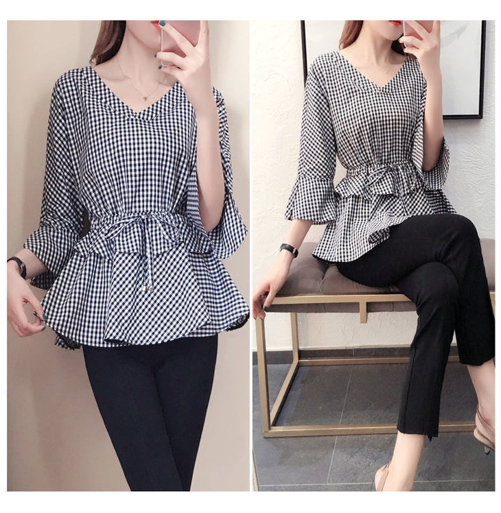 TZW-新款复古港风洋气时尚收腰显瘦小衫遮肚子上衣
