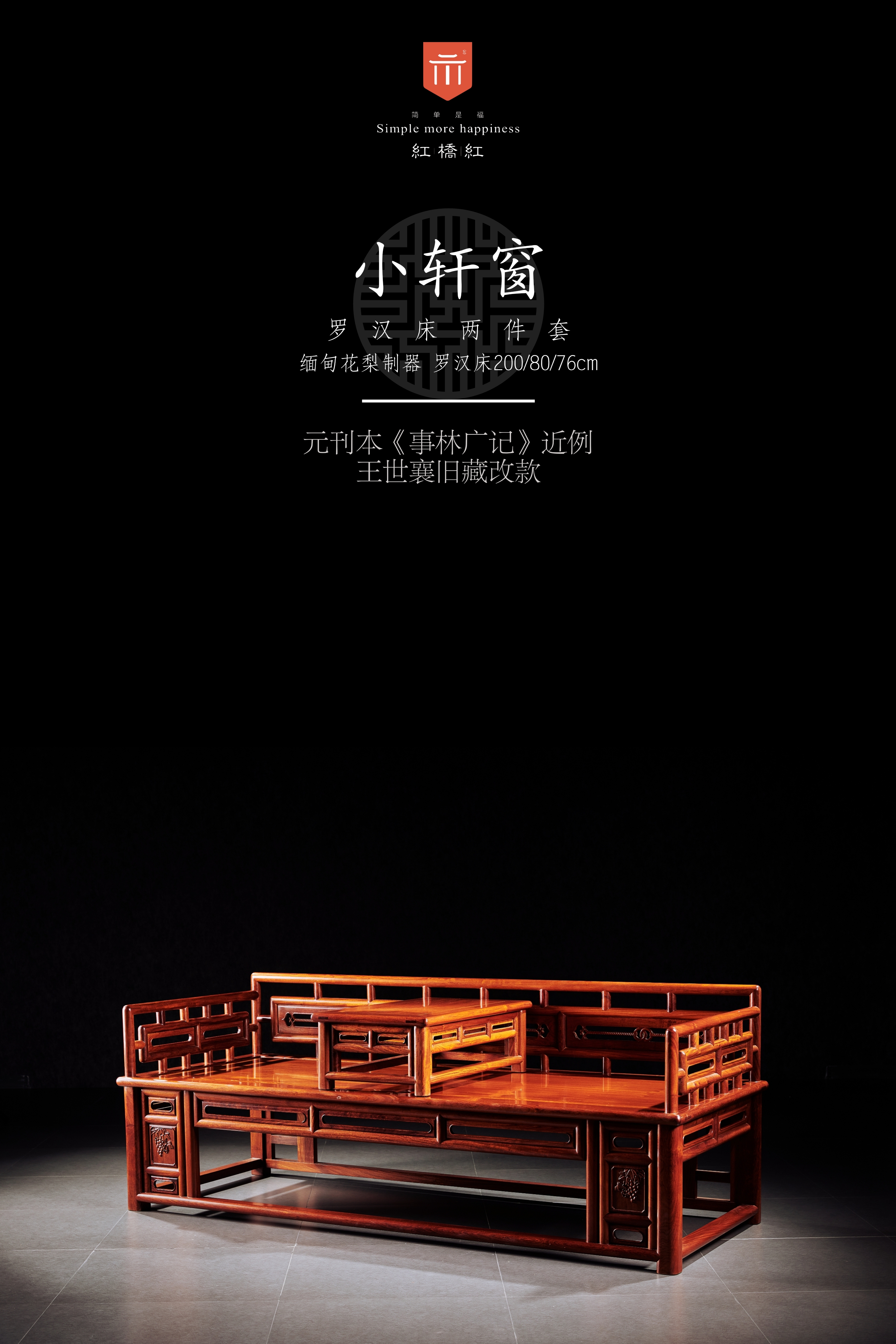 罗汉床:200*80*46cm/总高76cm